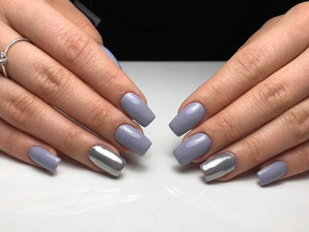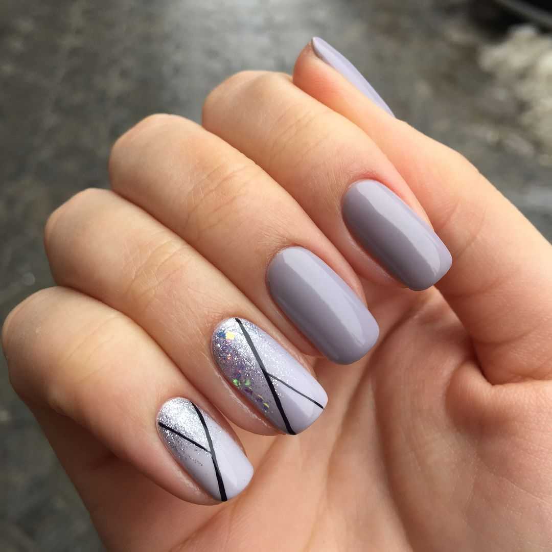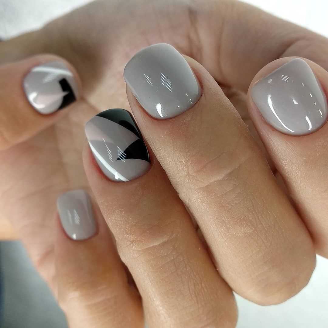 - серый. Для светлого маникюра используют аромат, который по своему составу близок к одному из “родителей” — белому цвету. Использование светло-серого позволит сделать маникюр более глубоким и интересным. На таком фоне шикарно будет смотреться серебристый френч или лунный маникюр, абстрактный контрастный рисунок;