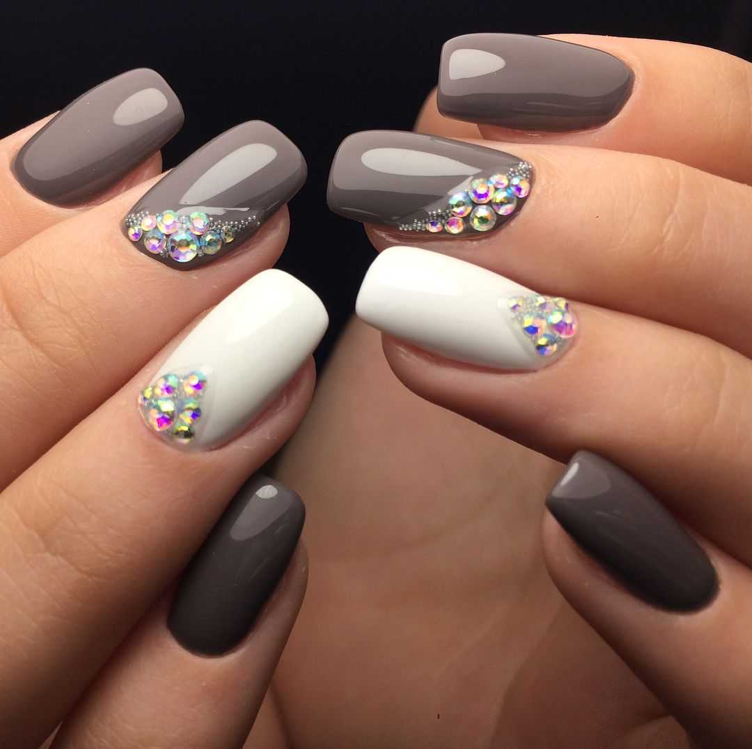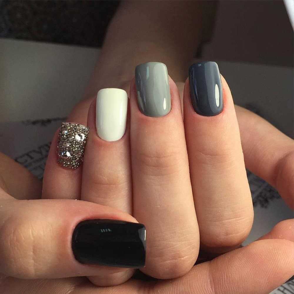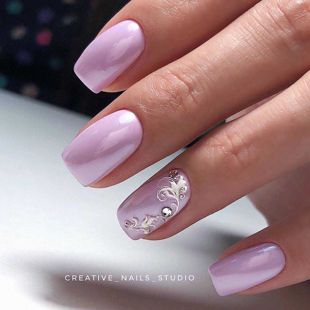 - серый. Для светлого маникюра используют аромат, который по своему составу близок к одному из “родителей” — белому цвету. Использование светло-серого позволит сделать маникюр более глубоким и интересным. На таком фоне шикарно будет смотреться серебристый френч или лунный маникюр, абстрактный контрастный рисунок;