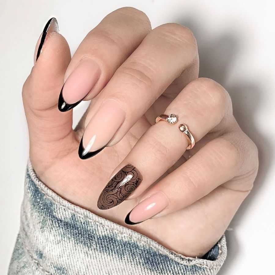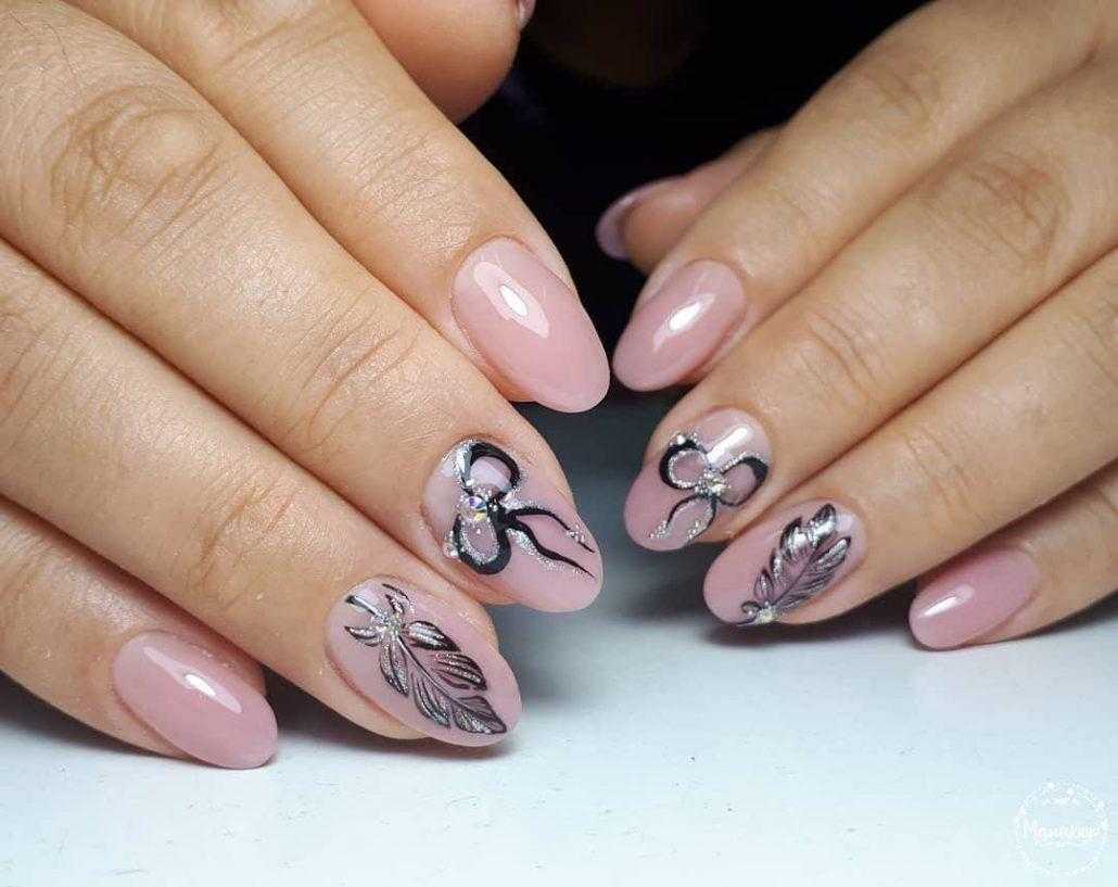 Отметим, что маникюр может быть выдержан в нюдовых тонах, но при желании наносится дизайн с использованием контрастного цвета. И он все равно останется воздушным, утонченным и будет иметь легкий налет романтичности.