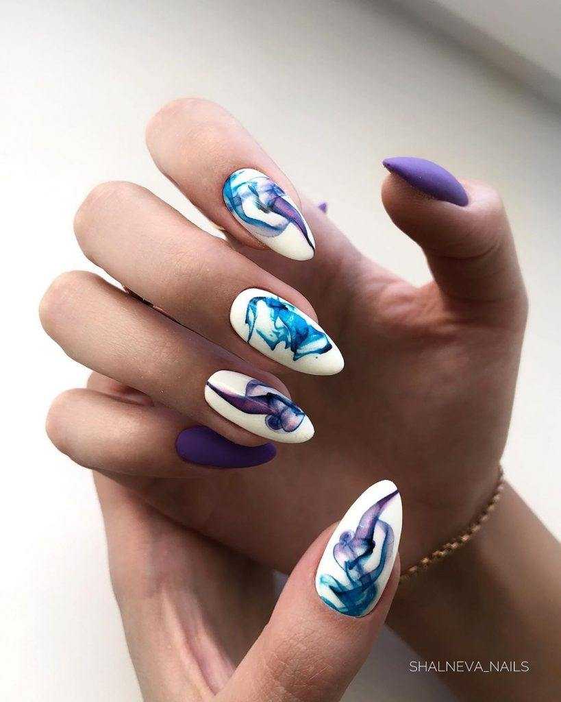 Завораживающий дымчатый мраморный маникюр на длинных ногтях.