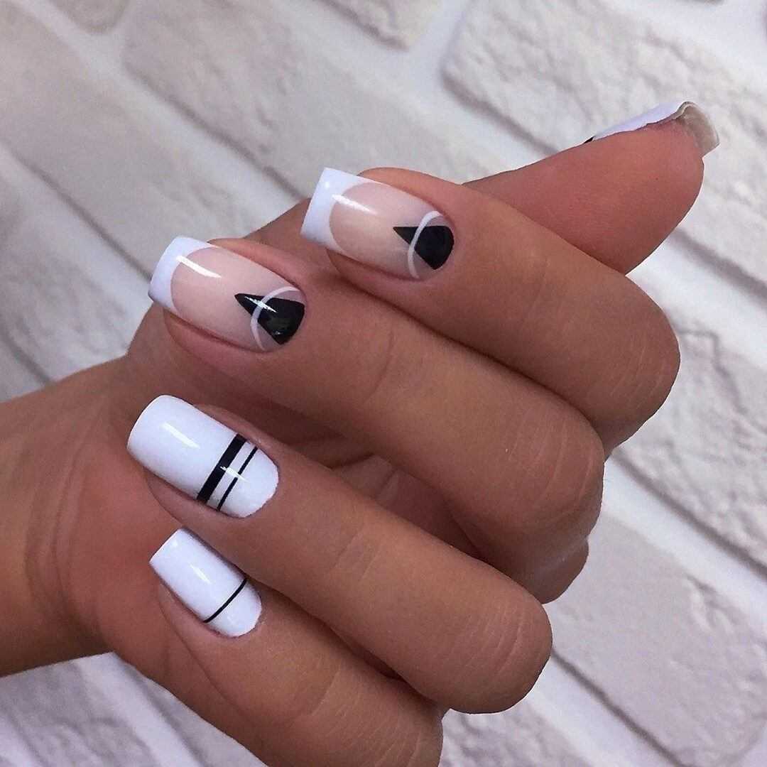 Рассматривая модные тенденции, новинки и тренды маникюра на короткие ногти, сложно пройти мимо нейл-арта с использованием геометрических узоров. Дизайн с тонкими линиями, ромбами, треугольниками, украшающими несколько или все ногти, будет дополнением стильных образов в 2021 году.