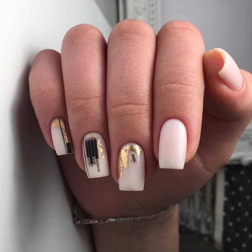 На коротких ногтях идеально сделать маникюр с фольгой. Это придаст необычный, интересный, стильный вид, наполняя ногти светом и переливами. Никакие дизайны маникюра не имеют такого сногсшибательного эффекта, как эффект фольги, который сочетается практически с любым оттенком основного лака. Фольгу можно применять как украшение для праздничного дизайна и на повседневном маникюре.