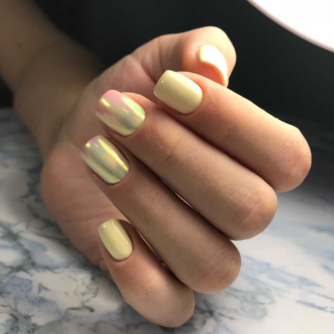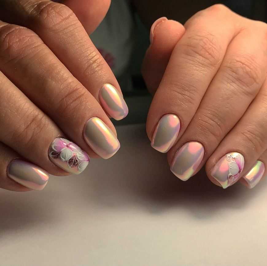 Он завоевывает все больше поклонниц. Этот незамысловатый дизайн сложно не заметить. Ногти приобретают невероятное сияние, переливаются всеми цветами радуги иди же имеют зеркальную поверхность. Сегодня мастера используют втирку, которая позволяет добиться различных результатов. Такой пастельный дизайн ногтей находится в тренде свадебной моды. Невесты с большим восторгом смотрят на готовый результат.