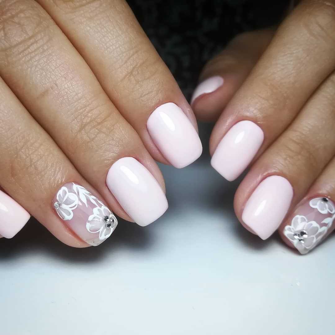 • маникюр с рисунком – китайская роспись или восточные штрихи на ноготках, имитирующие узоры мехенди, как нельзя кстати смотрятся именно на квадратной удлинённой ногтевой пластине; аккуратная нежная или бежевая основа базового покрытия мягко принимает на свою поверхность художества в виде цветочных и узорчатых изображений в различных красочных интерпретациях – смотрится стильно, модно и художественно-эстетично;• маникюр со стразами – прекрасным вариантом для обрамления ноготков в нарядную тематическую направленность служит использование коронарной или треугольной каменной выкладки в прикорневой зоне ногтя с изначально нанесенным глубоким пигментированным базовым покрытием. Маникюр со стразами, наверное, никогда не покинет победоносных позиций популярности в мировом маникюрном искусстве;• маникюр с гипюром – самым нежным, самым аккуратным и максимально уместным ажурным маникюром служит декор с вензелями гипюра, выполненный в качестве подложки в дополнение к классическому белоснежному френчу. Вид такого нейл-арта просто непревзойдённый, он идеально подойдёт не только на каждый день, но и на торжественные мероприятия и даже на свадебное празднество.
