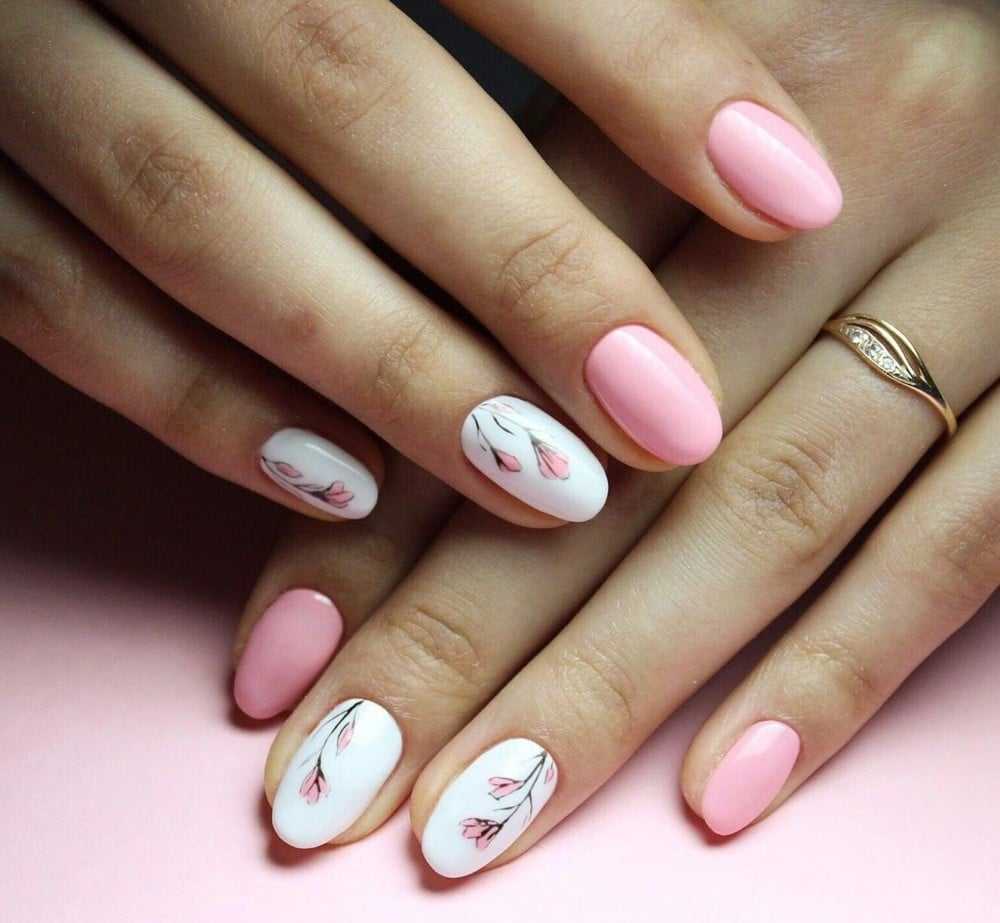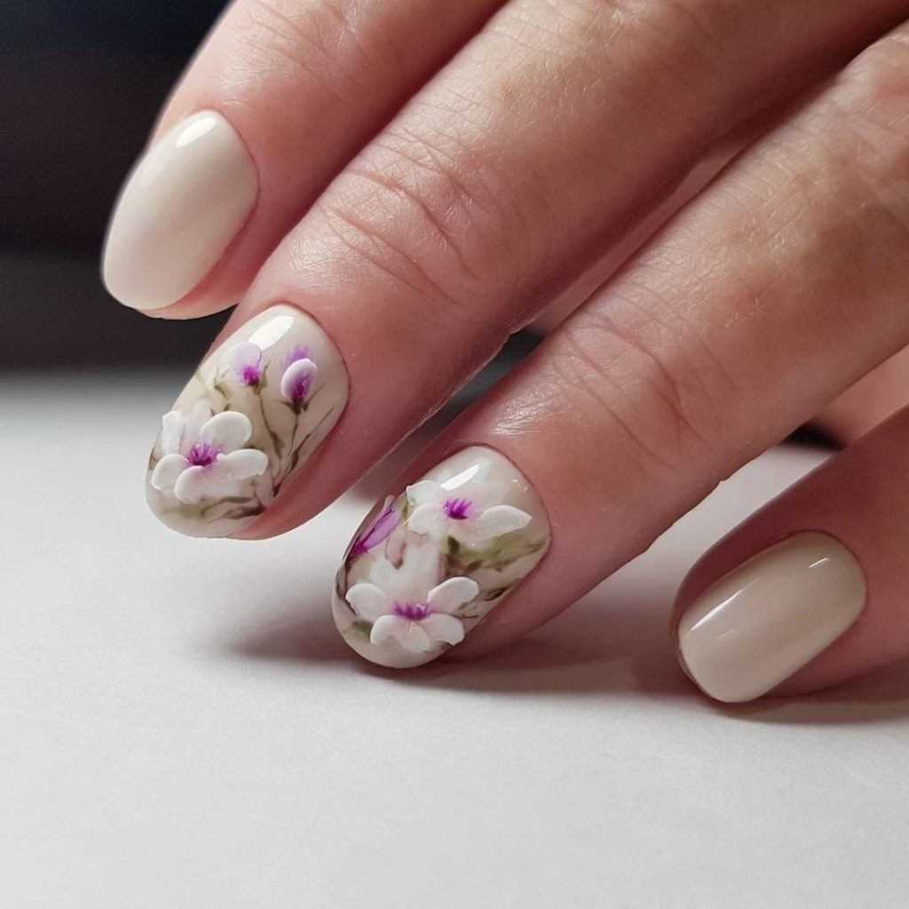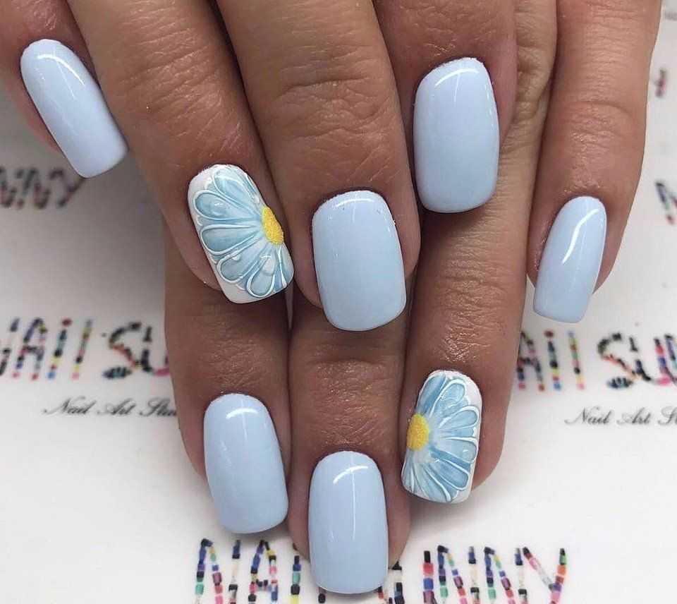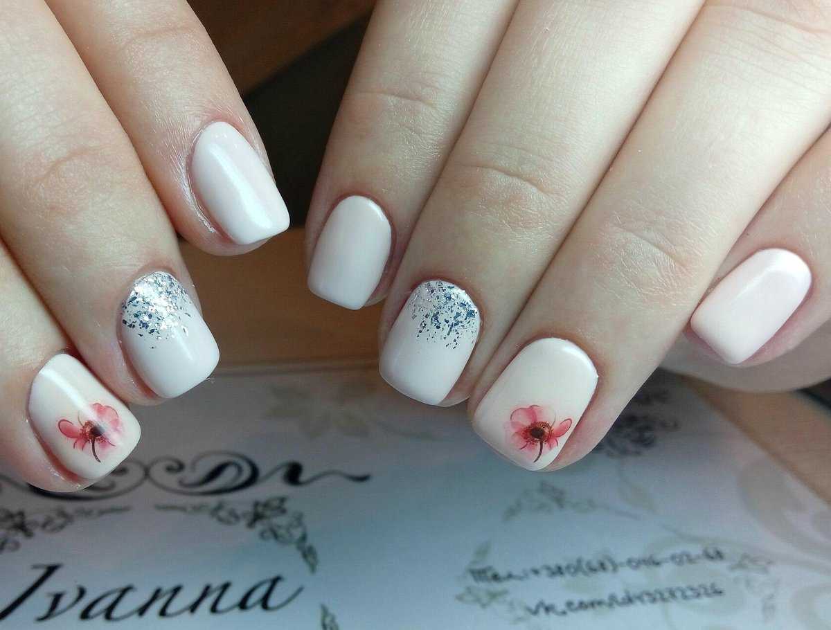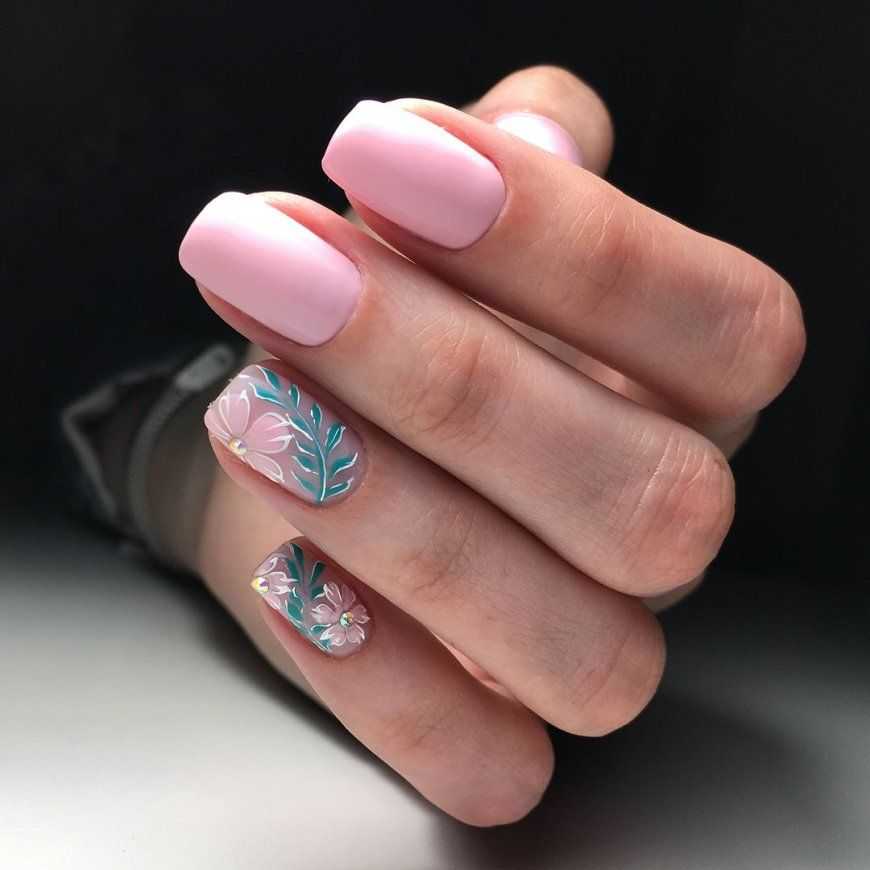 Еще один интересный вариант оформления ногтей. В связи с приближающей весной, все больше девушек стремится себе создать теплое, позитивное, радостное настроение. А в этом помогут цветочные мотивы. Рисунки могут быть нарисованы вручную, но если вы сомневаетесь в своем художественном таланте, то смело используйте специальные наклейки. Конечно, помимо цветов, существует множество и других не менее интересных вариантов – осколки стекла, геометрия, абстракция, полоски, кружочки, веточки.