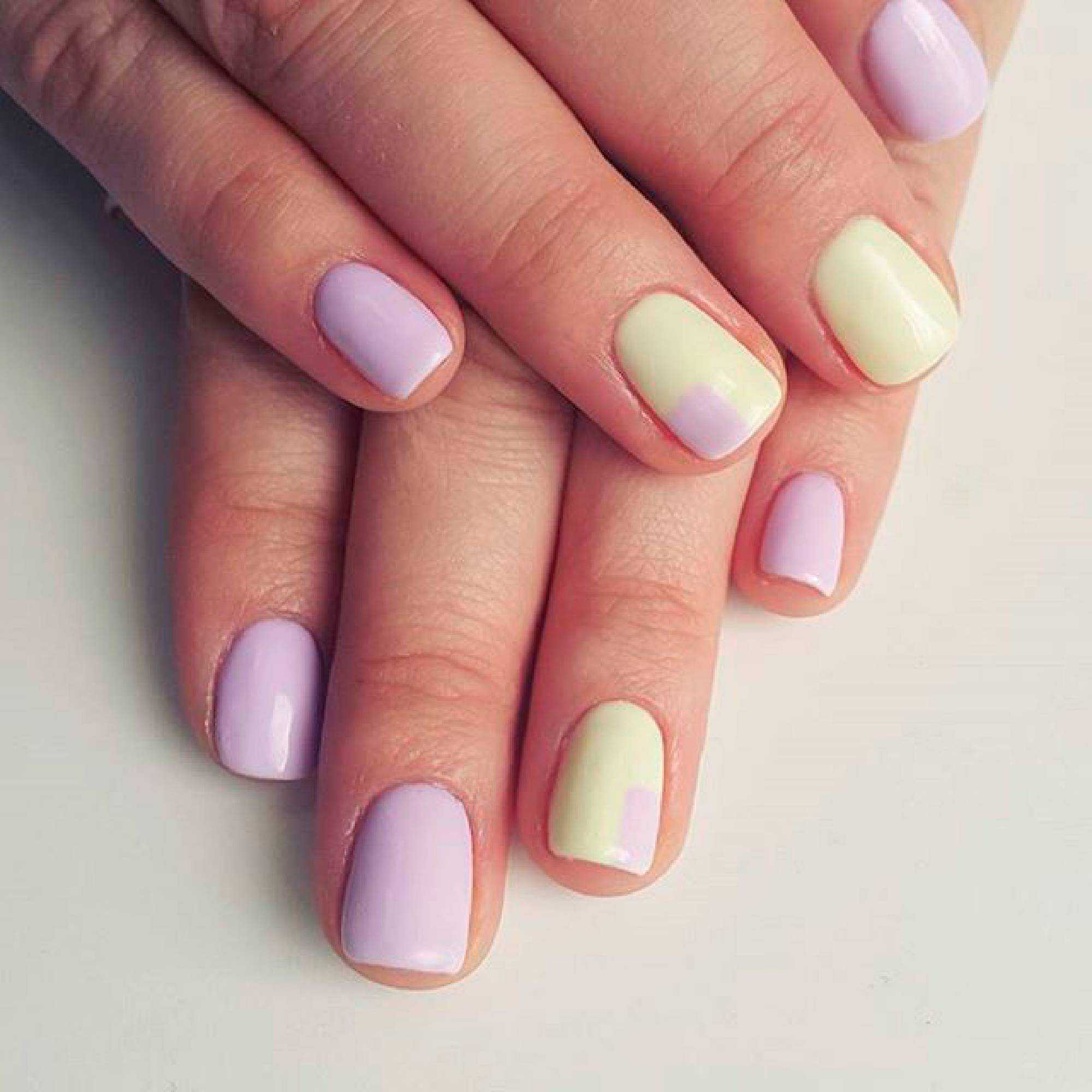 Из года в год остается в моде геометрический рисунок на ноготках. Это не удивительно, ведь его можно реализовать на любой основе. Пастельная цветовая гамма идеально для этого подходит. Только представьте насколько красиво будет смотреться рисунок в белом цвете на таком фоне. Если вам по душе более заметный, контрастный рисунок, смело наносите его в черном или темно-синем цвете. Таким образом получится достичь необходимого эффекта.
