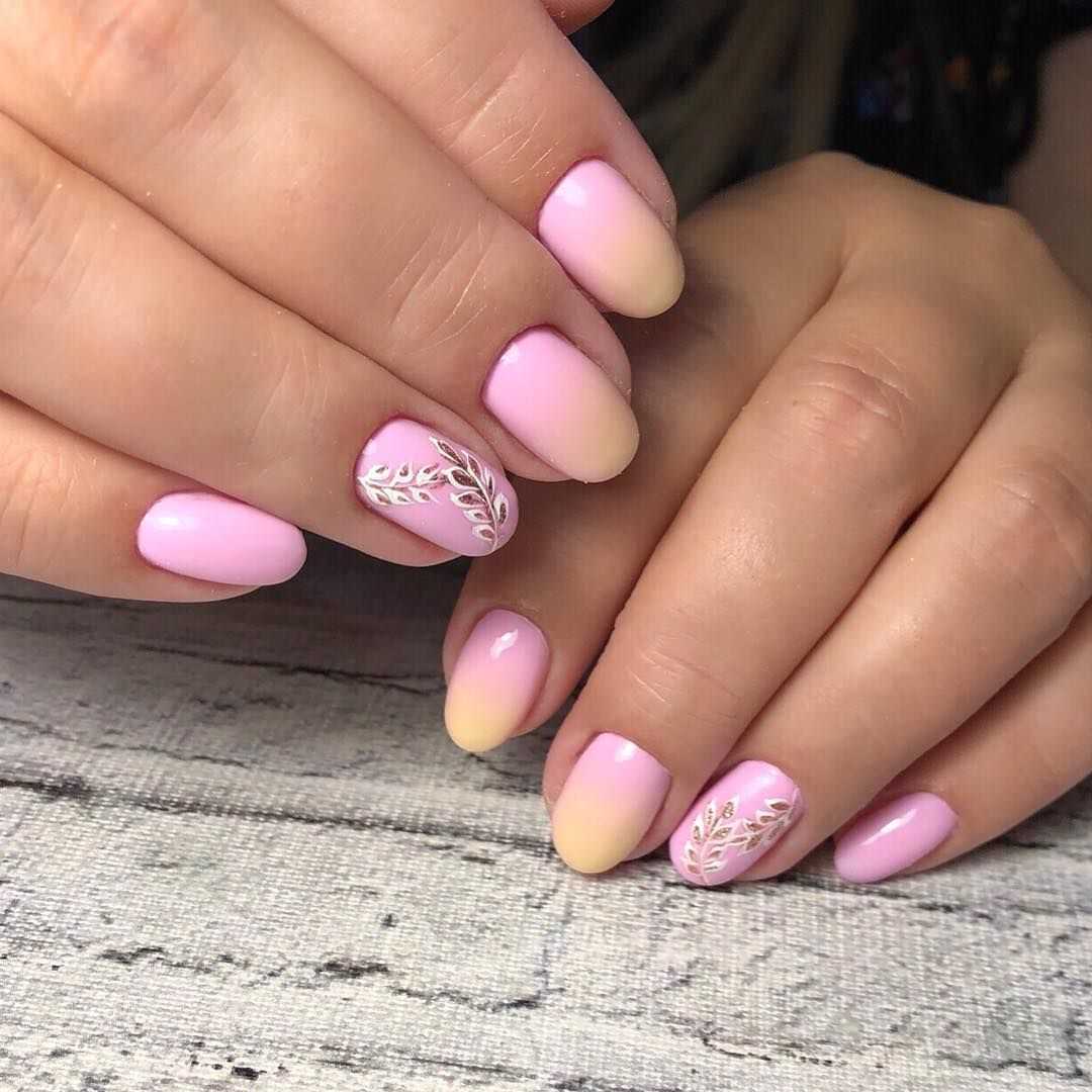 Особой нежностью на руках обладает эффект градиента. В основном используют светлые оттенки. Аккуратно исполненная растяжка добавляет рукам настоящую утонченность. Этот вариант отлично дополняют тонкими веточками, цветами, фольгой или блеском.