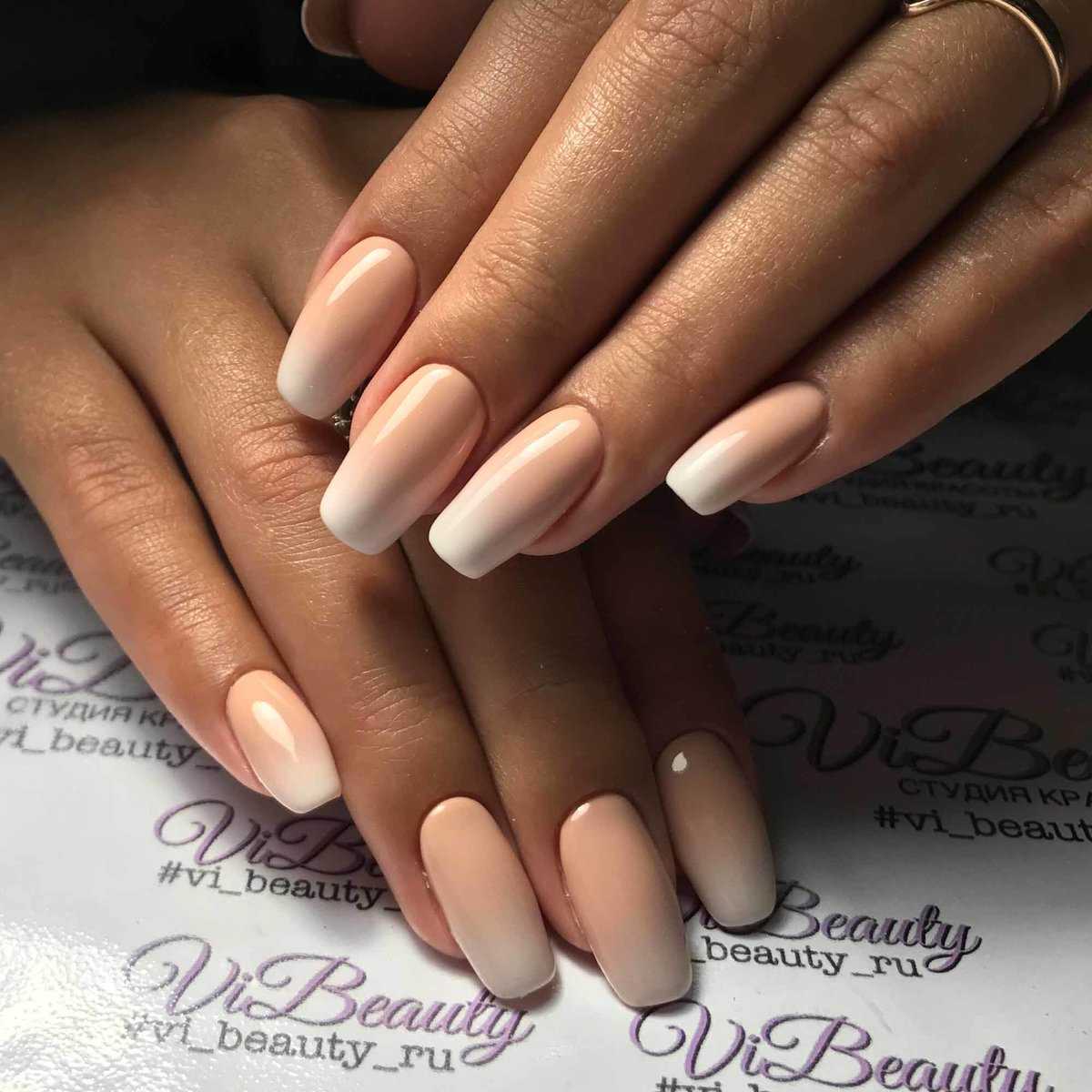 К нежным дизайнам относятся ноготки с нюдовым покрытием и не ярким декором. Это может быть нежное омбре с: