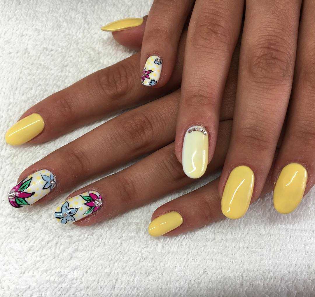 Многоцветие на ногте должно быть основным элементом маникюра. Украсить можно один-два пальчика