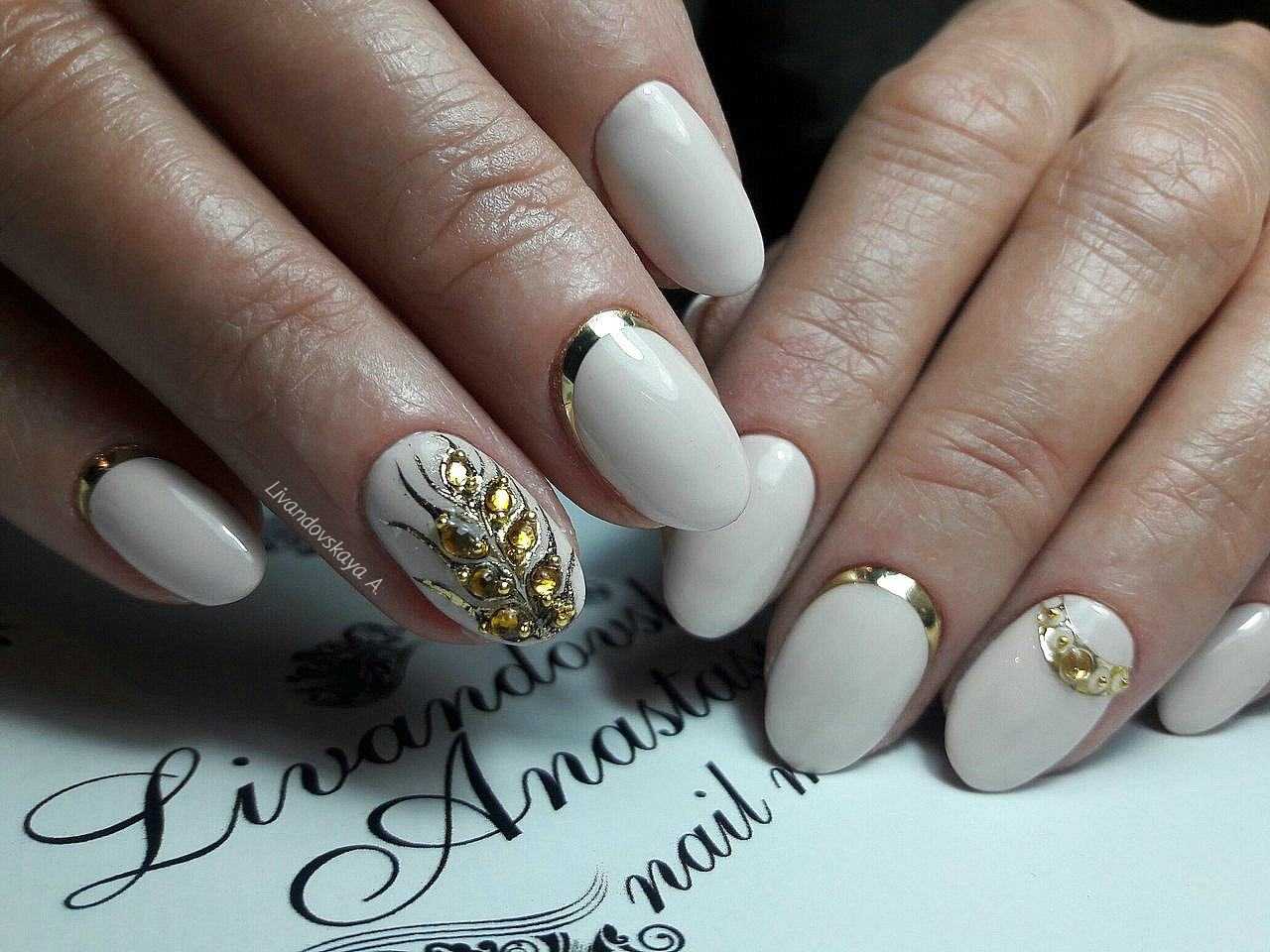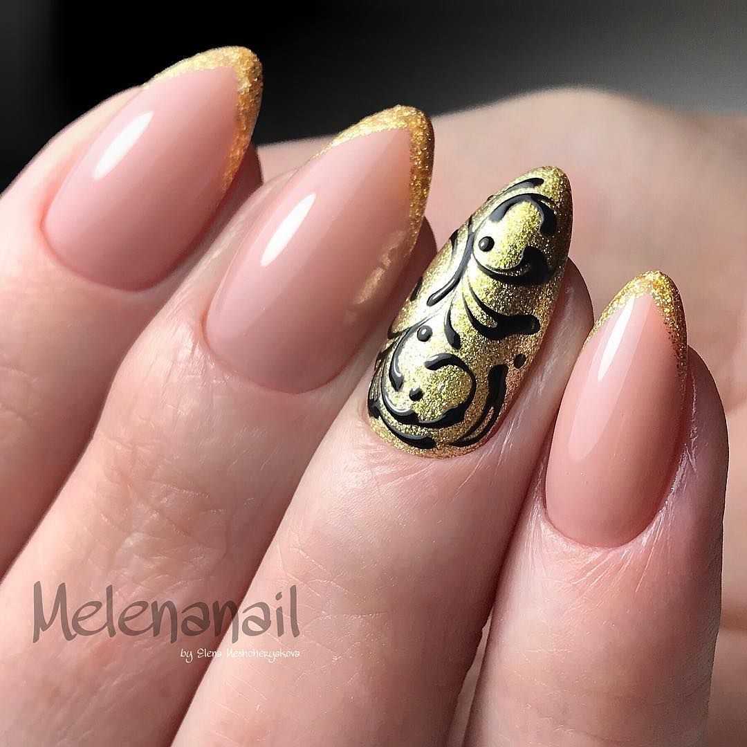 Главное при оформлении нейл-арта с золотом и серебром — не использовать их в избытке — от этого образ удешевляется. Из материалов лучшим выбором будет гель лак — маникюр прослужит долго.