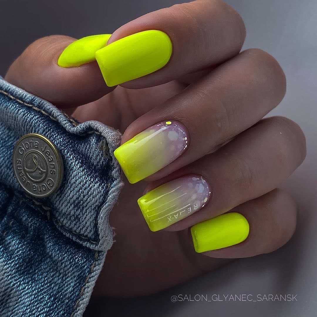 - На лето можно выбирать сочные и неоновые цвета, как например, розовый, желтый, лимонный, оранжевый, голубой, алый, бирюзовый, мятный.