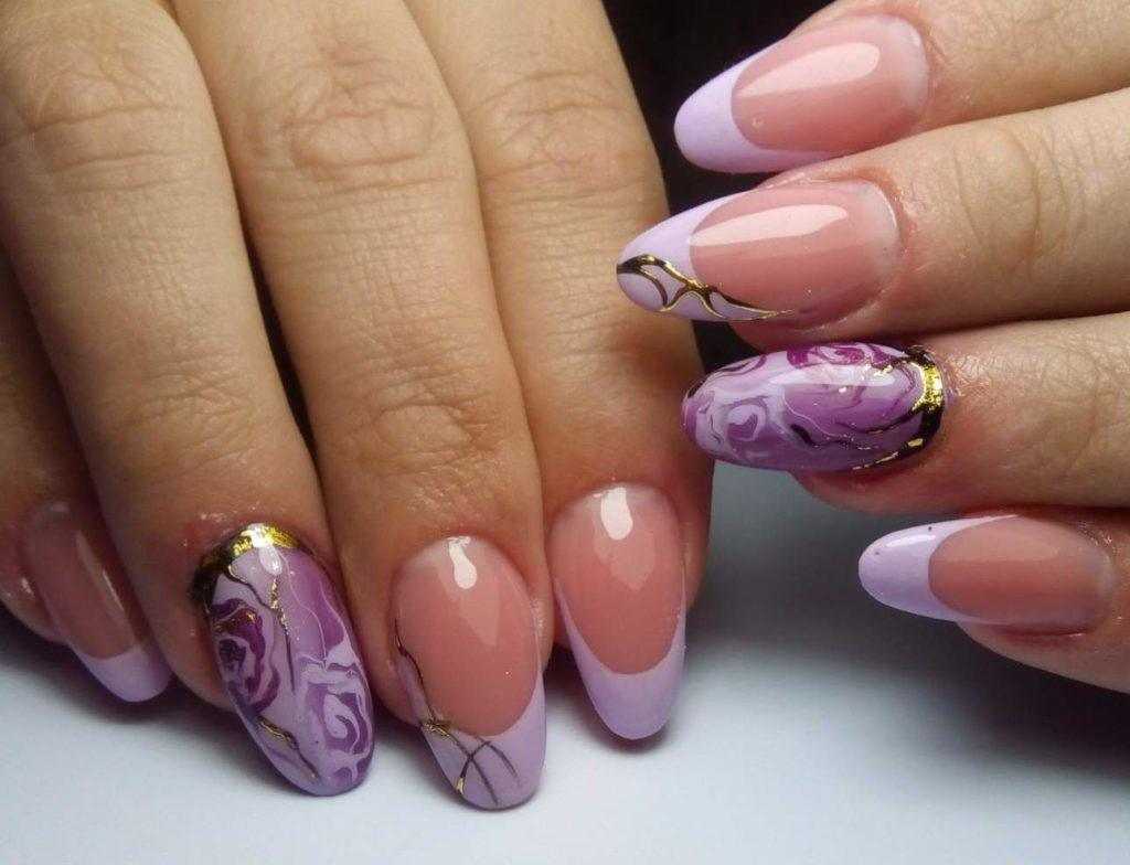Не теряет актуальности французский маникюр гель лаком с рисунками. Это могут быть нежные вензеля, тонкие линии гелем «Паутинка», забавные мультяшные картинки. Ниже на фото работы мастеров 2019 года.