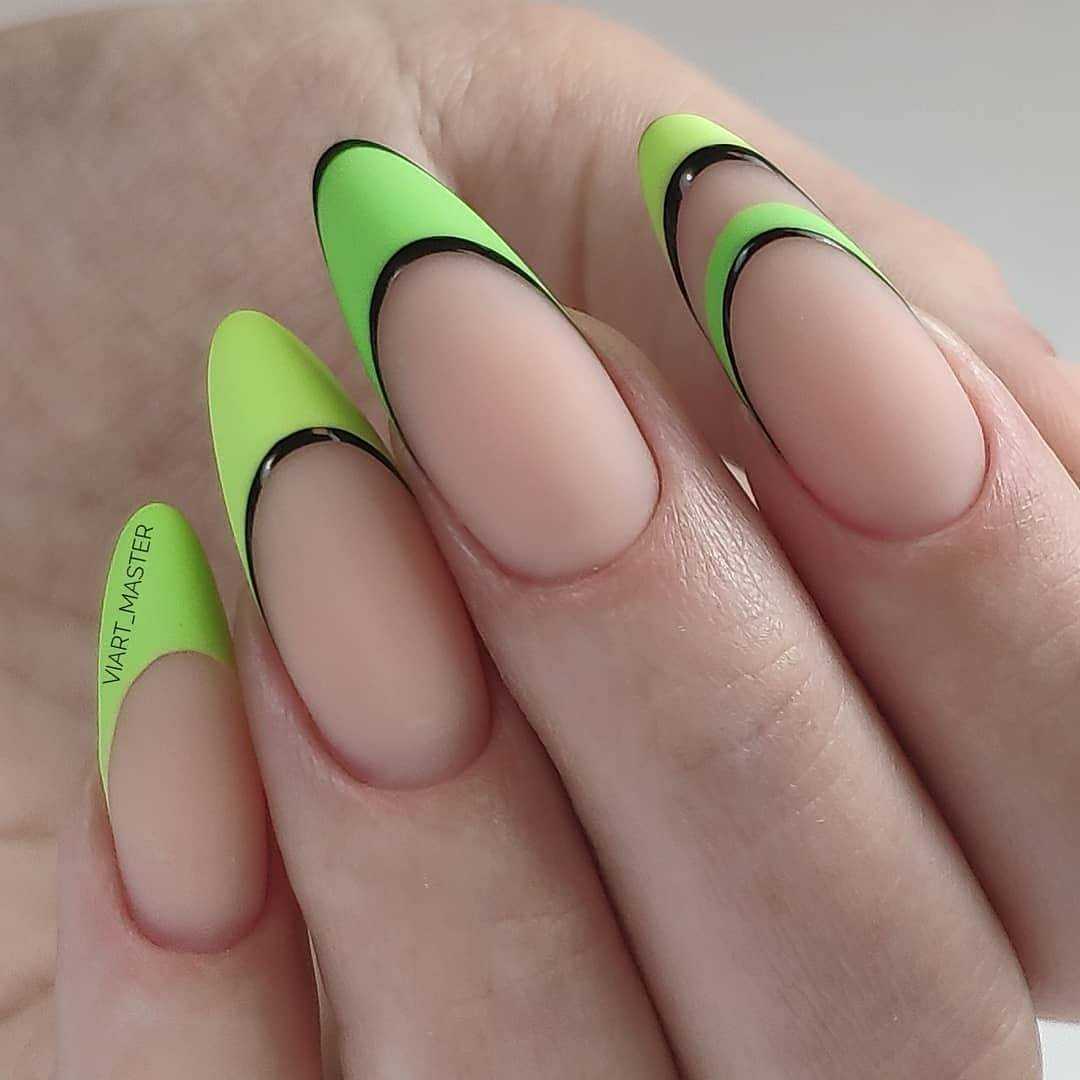 Острые ногти сами по себе очень привлекательны. Обладательницы такой формы вызывают неподдельный интерес. Это смелые натуры. Обуздать необычную форму в ежедневном образе поможет классический или цветной тонкий френч с минималистичным дизайном.