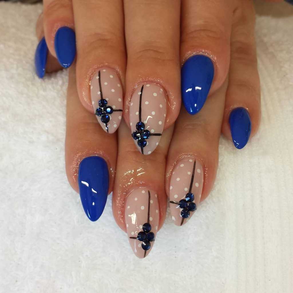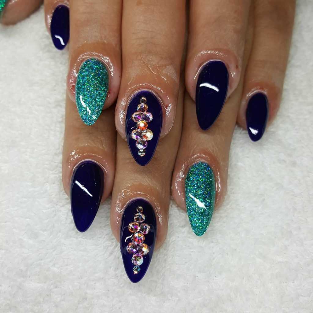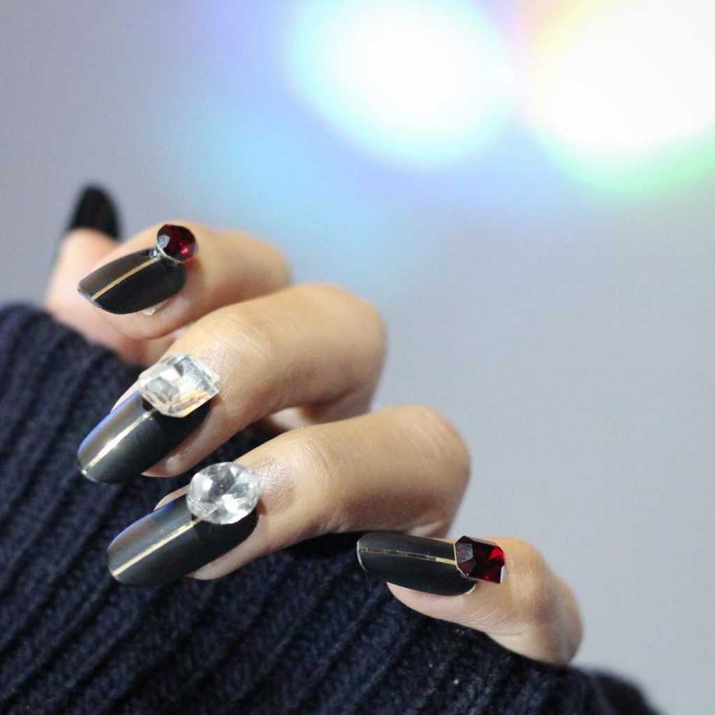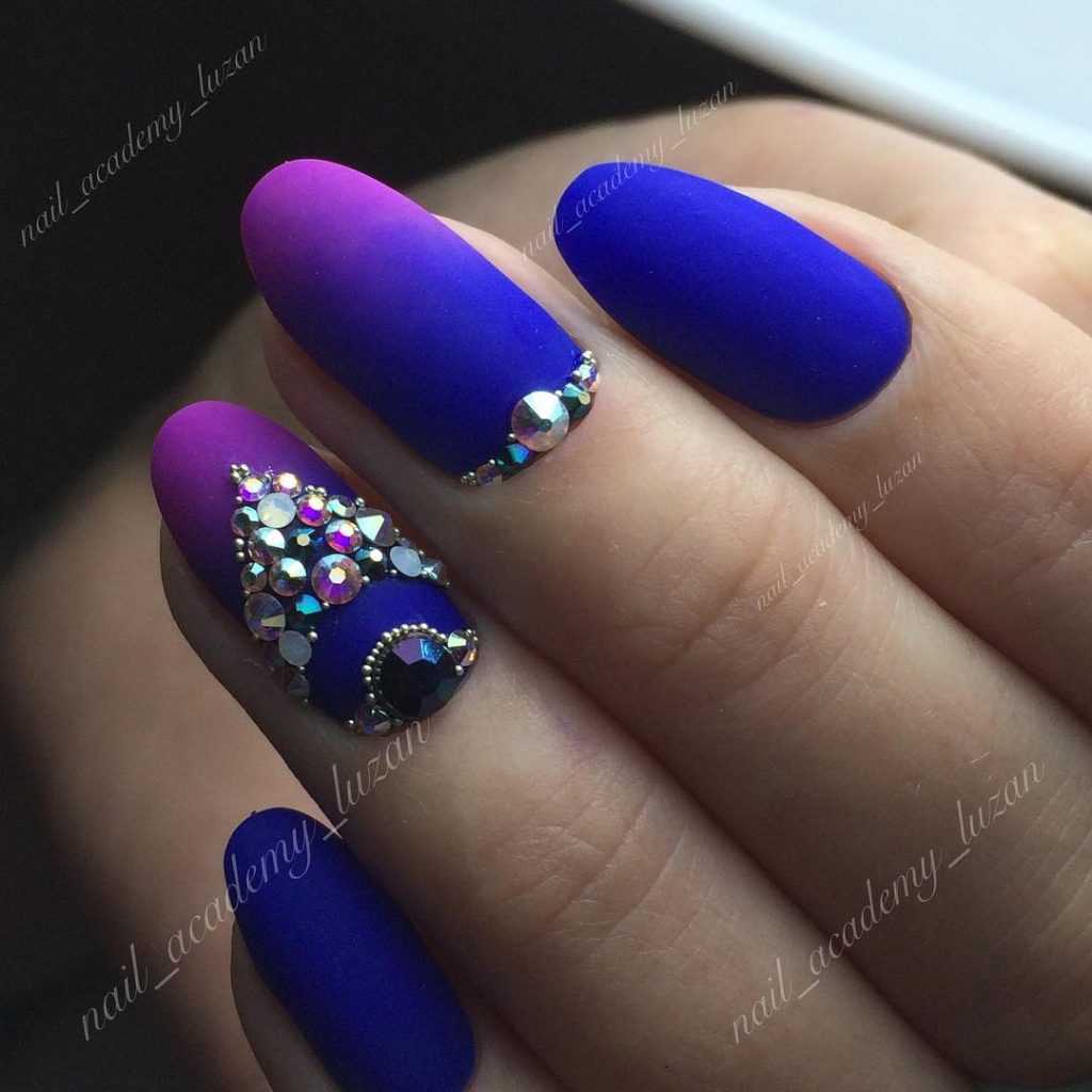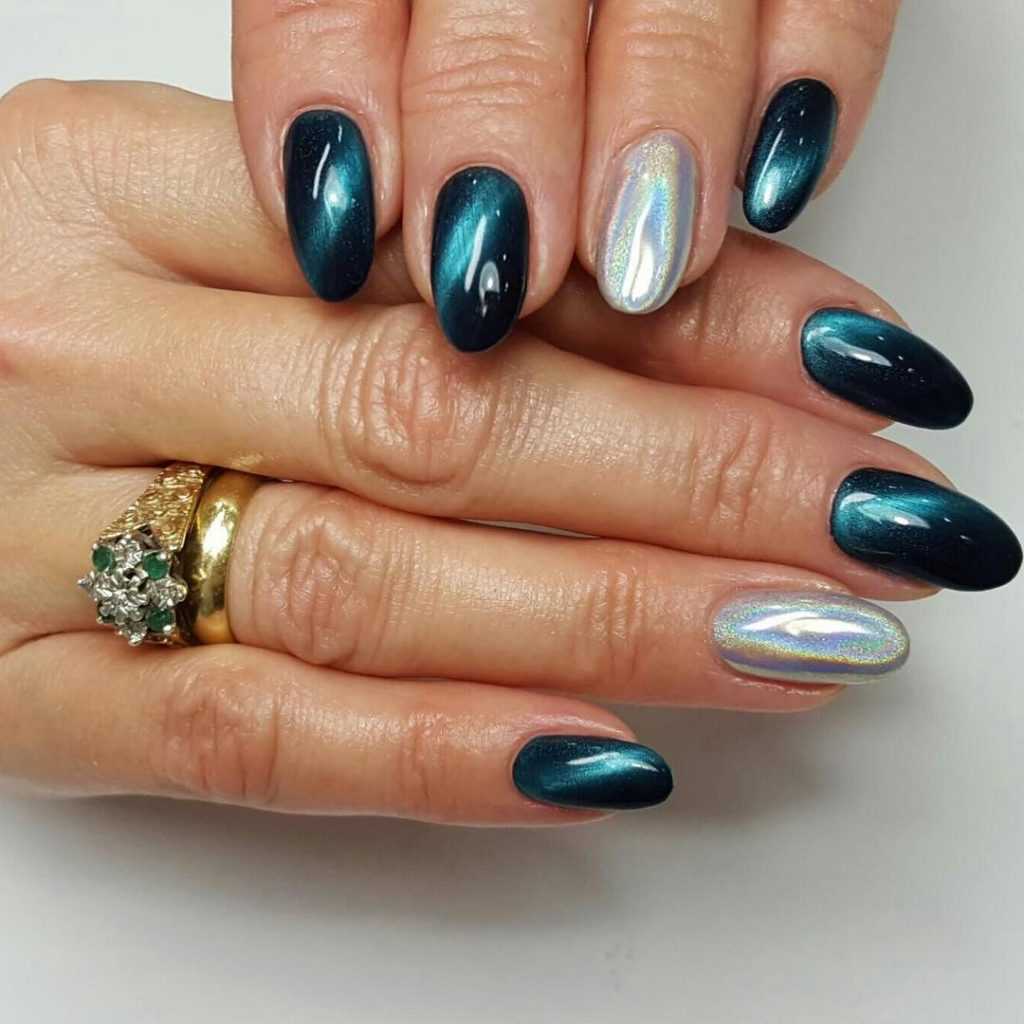 Не менее популярны насыщенные благородные оттенки красного, синего и зеленого. Все эти цвета отлично сочетаются друг с другом, поэтому вариантов нейл-дизайна множество.