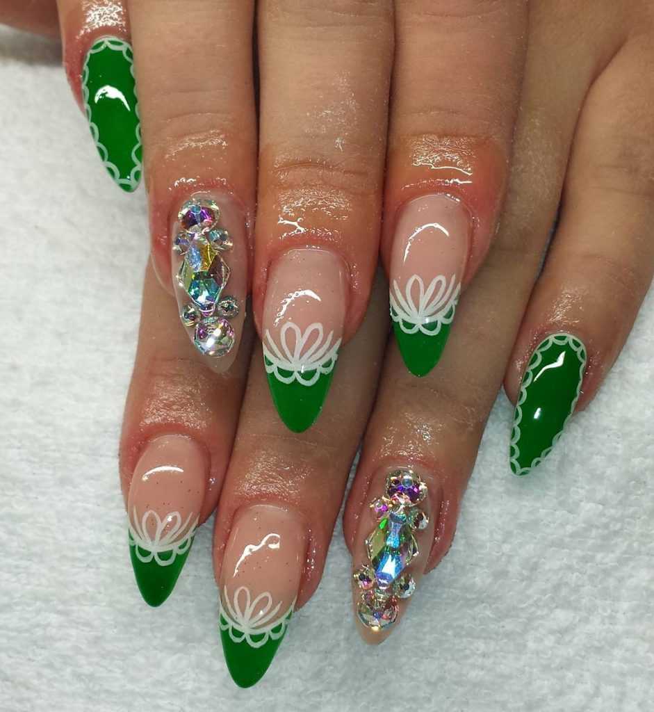 - Покройте ноготь указательного и среднего пальца изумрудным цветом.