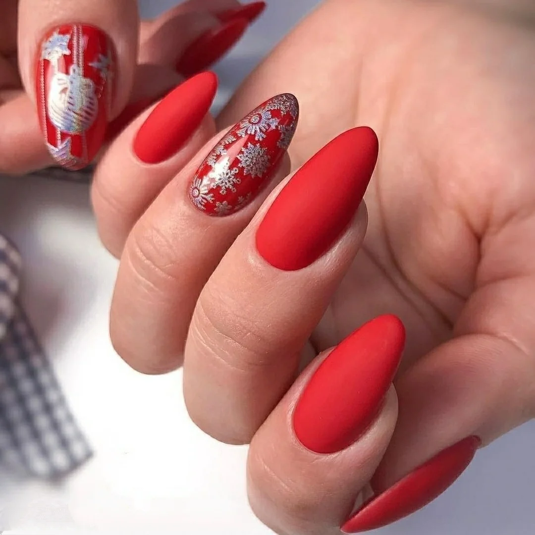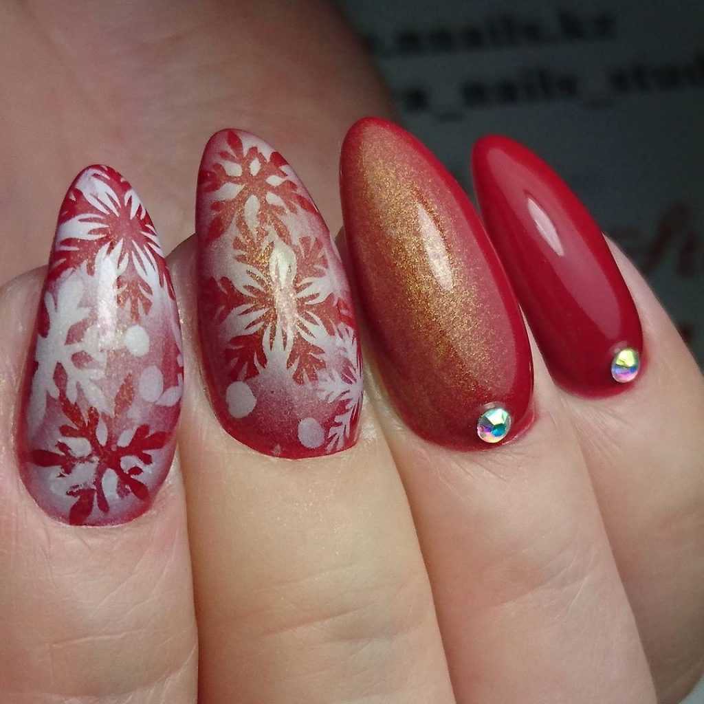 Это один из самых популярных цветов для создания новогоднего маникюра. Определиться с вариантом может быть не просто, поскольку они предложены сотнями. Чтобы легче было определиться, нужно продумать заранее образ и подобрать наряд