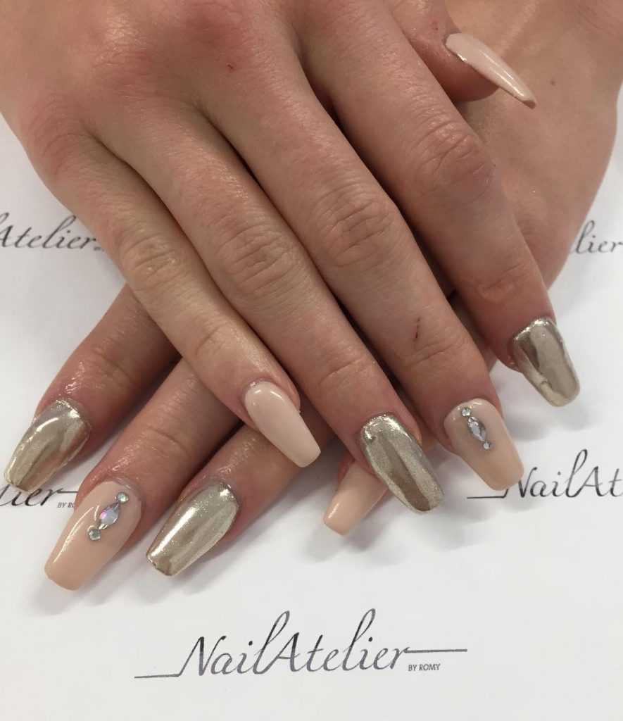 Такой маникюр будет шикарно комбинировать с различными драгоценными украшениями и богатыми нарядами. Настоящим украшением классического платья станут ноготки, покрытые золотистым или серебристым лаком. Этот маникюр можно сделать, воспользовавшись специальной фольгой или лаком.