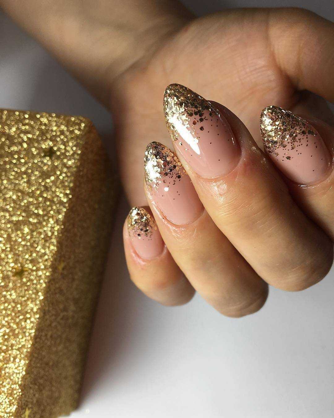 #4 Нюдовый маникюр с блестками на кончиках ногтей