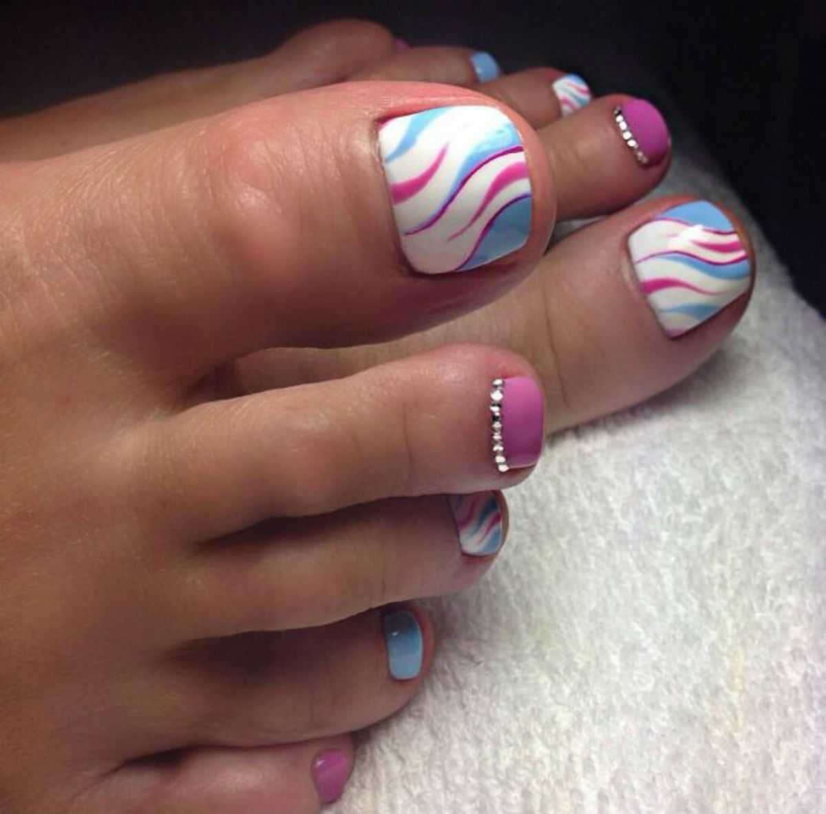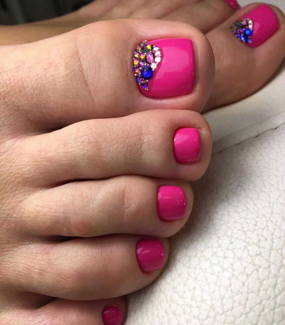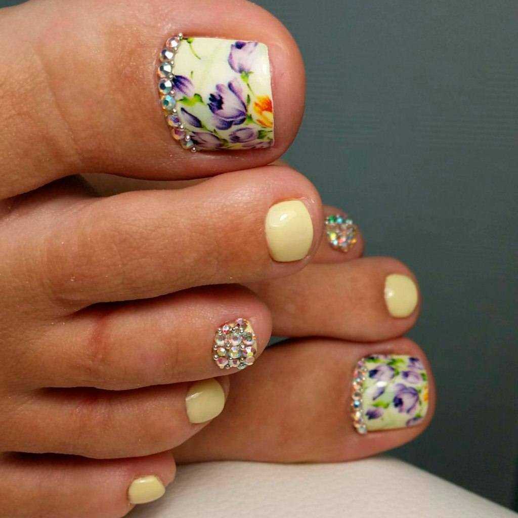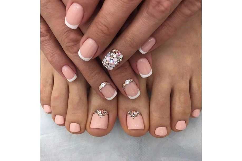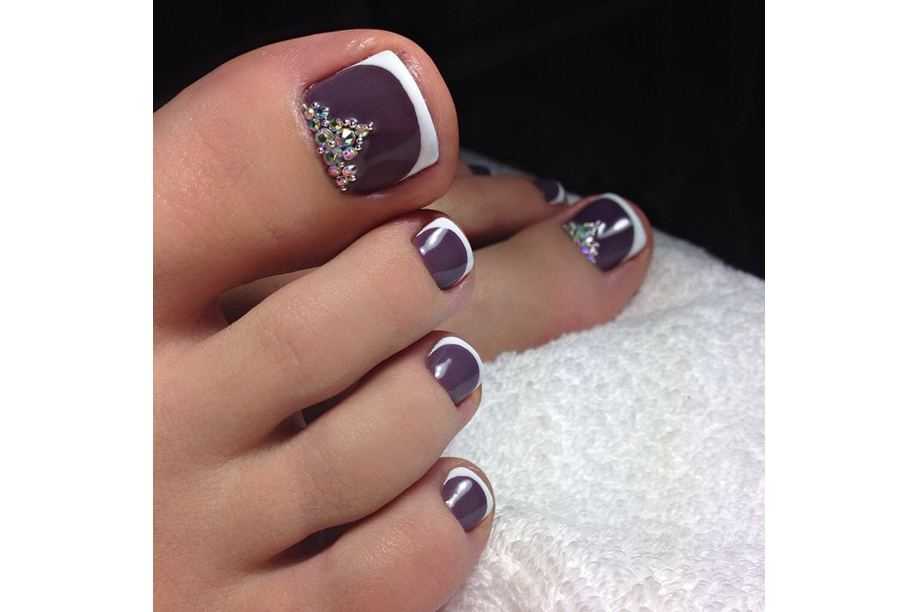 Варианты педикюра с разноцветными стразами
