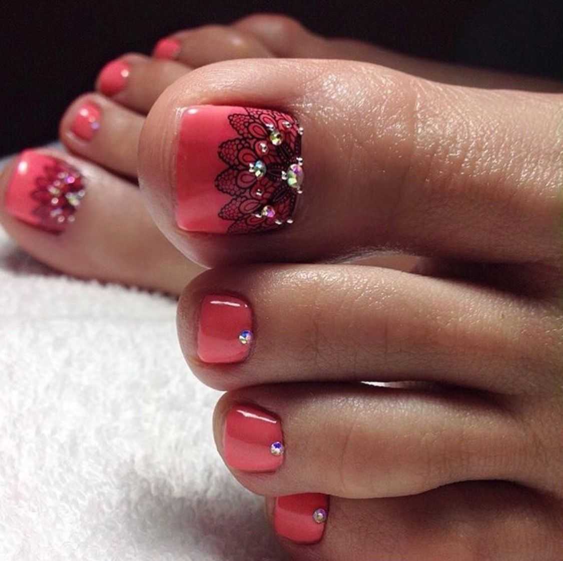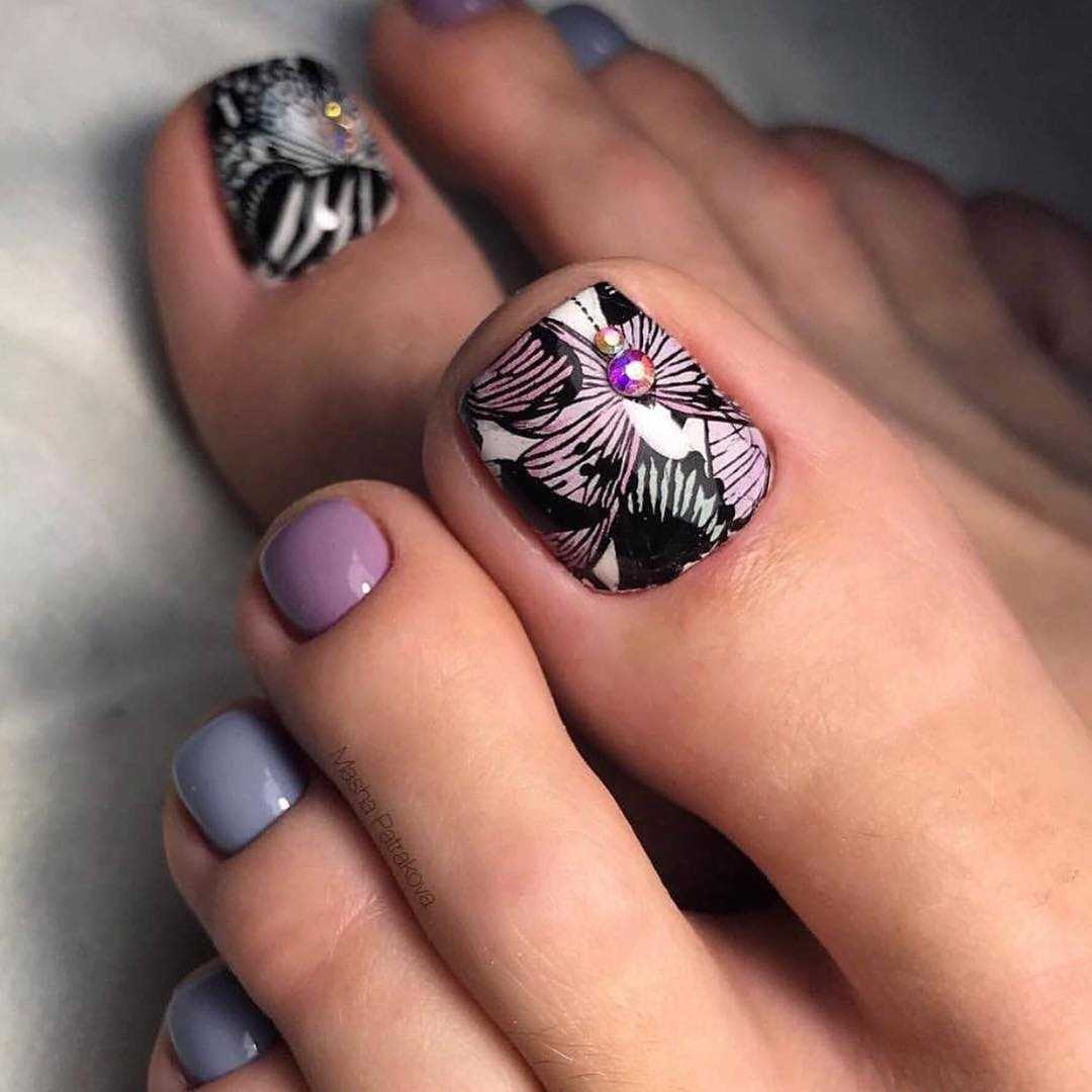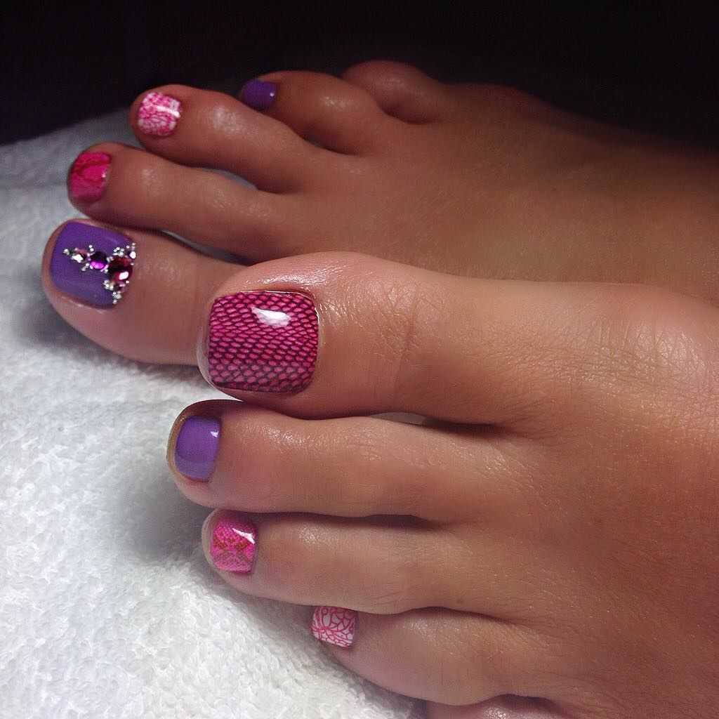 Варианты педикюра с разноцветными стразами
