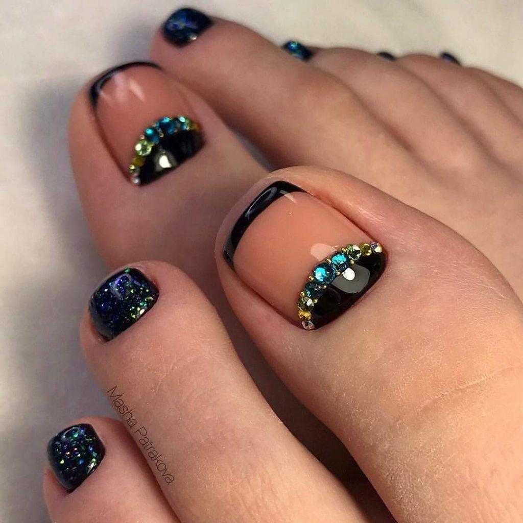 Модный педикюр с блестками и стразами: идеи 2022 года