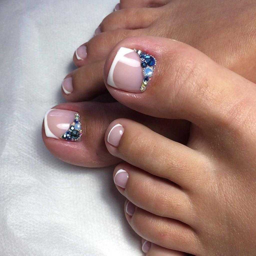 Модный педикюр 2022 со стразами и камнями
