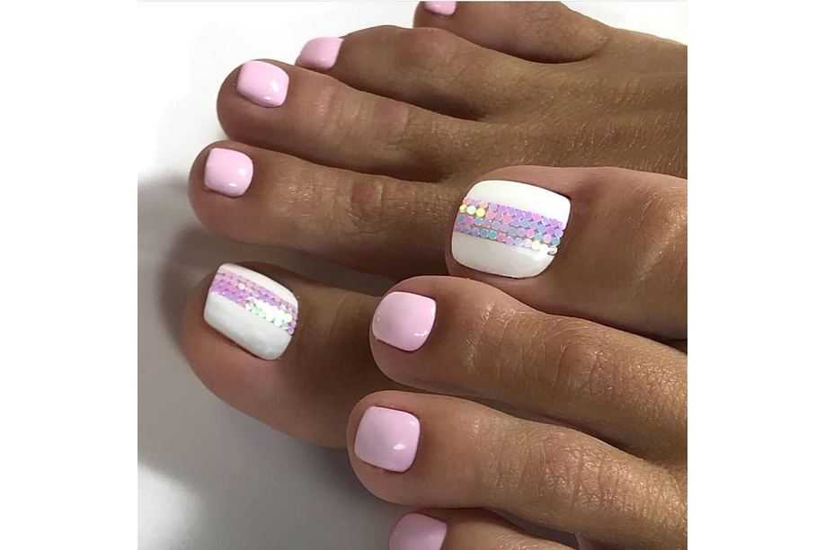 Педикюр с блестками: идеи 2022 года