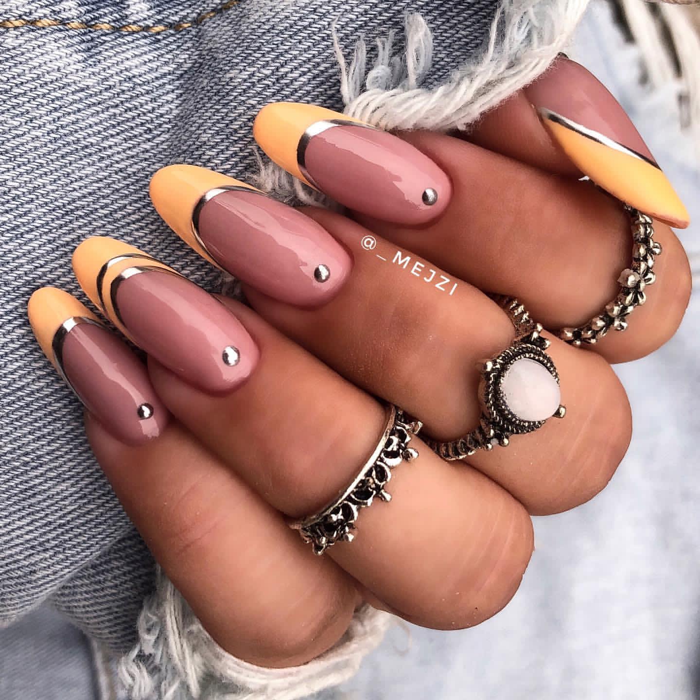 Маникюр оранжевым и желтым лаком, новинки 2021