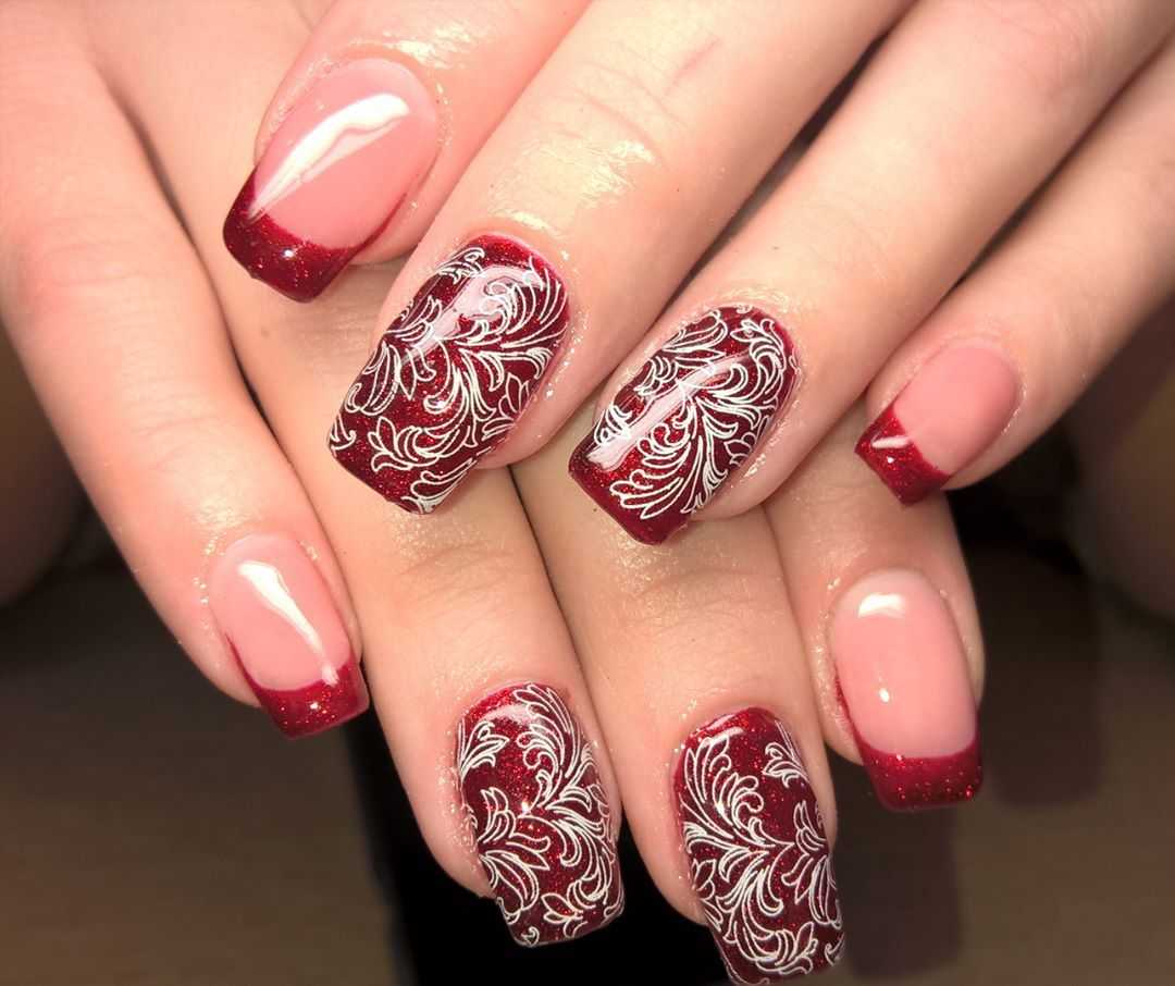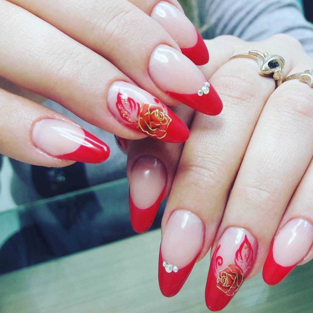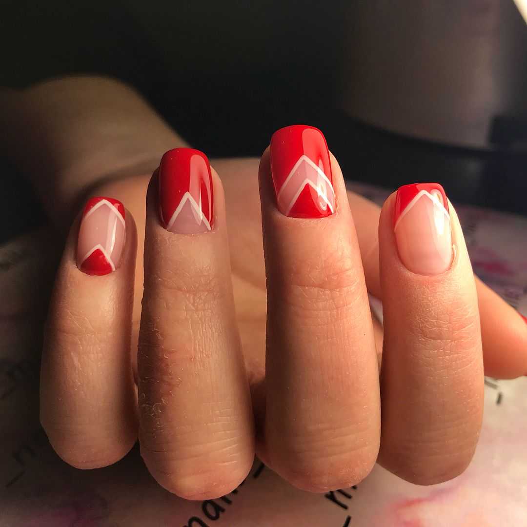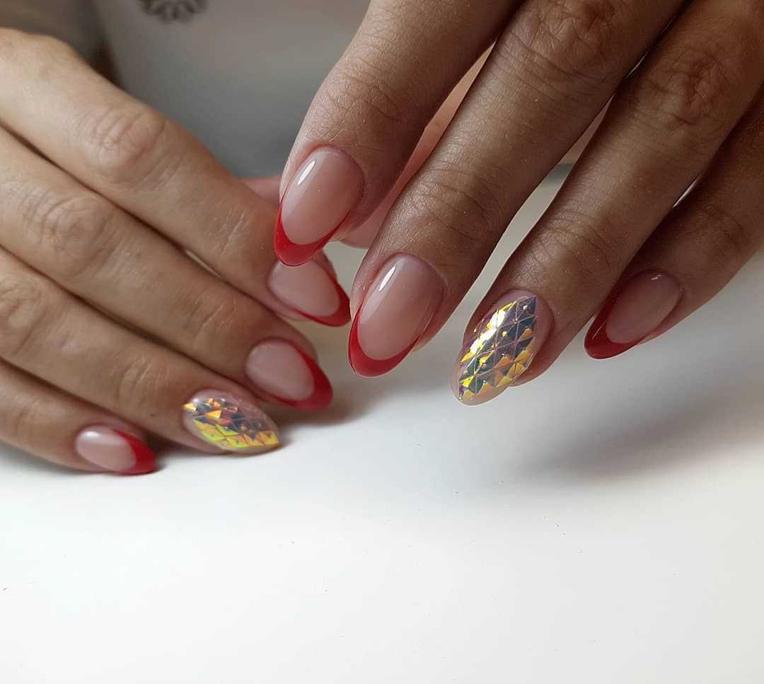 Ультрамодный маникюр френч 2022 года представляет собой почти классический дизайн. Вот только выступающий край ногтя окрашен не в белый, а в красный цвет. Такой вариант выглядит очень естественно и при этом ярко и неординарно, ведь сочетает в себе сразу два классических приема – френч и красный лак.