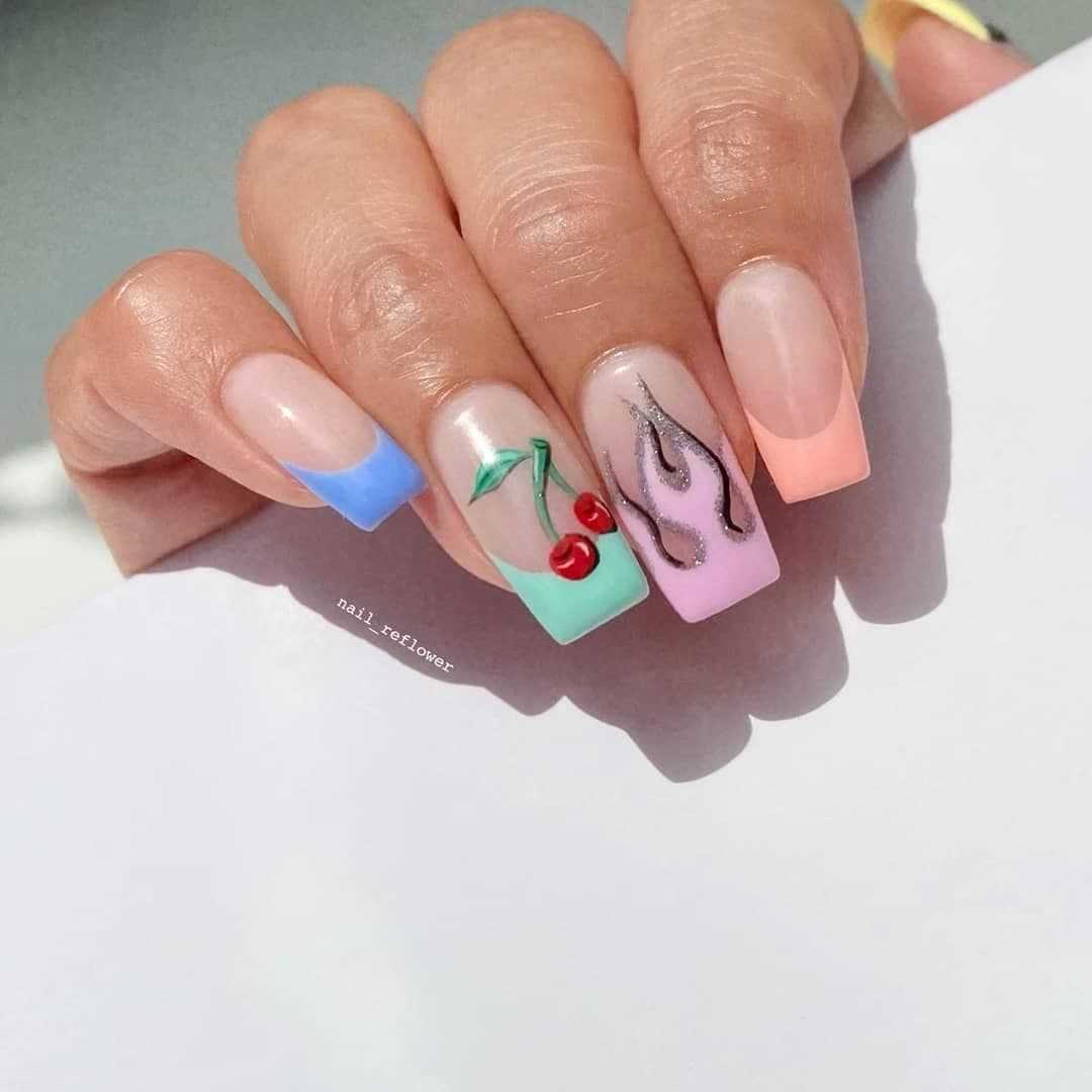 - Сочетание ярких и пастельных оттенков гель-лака;