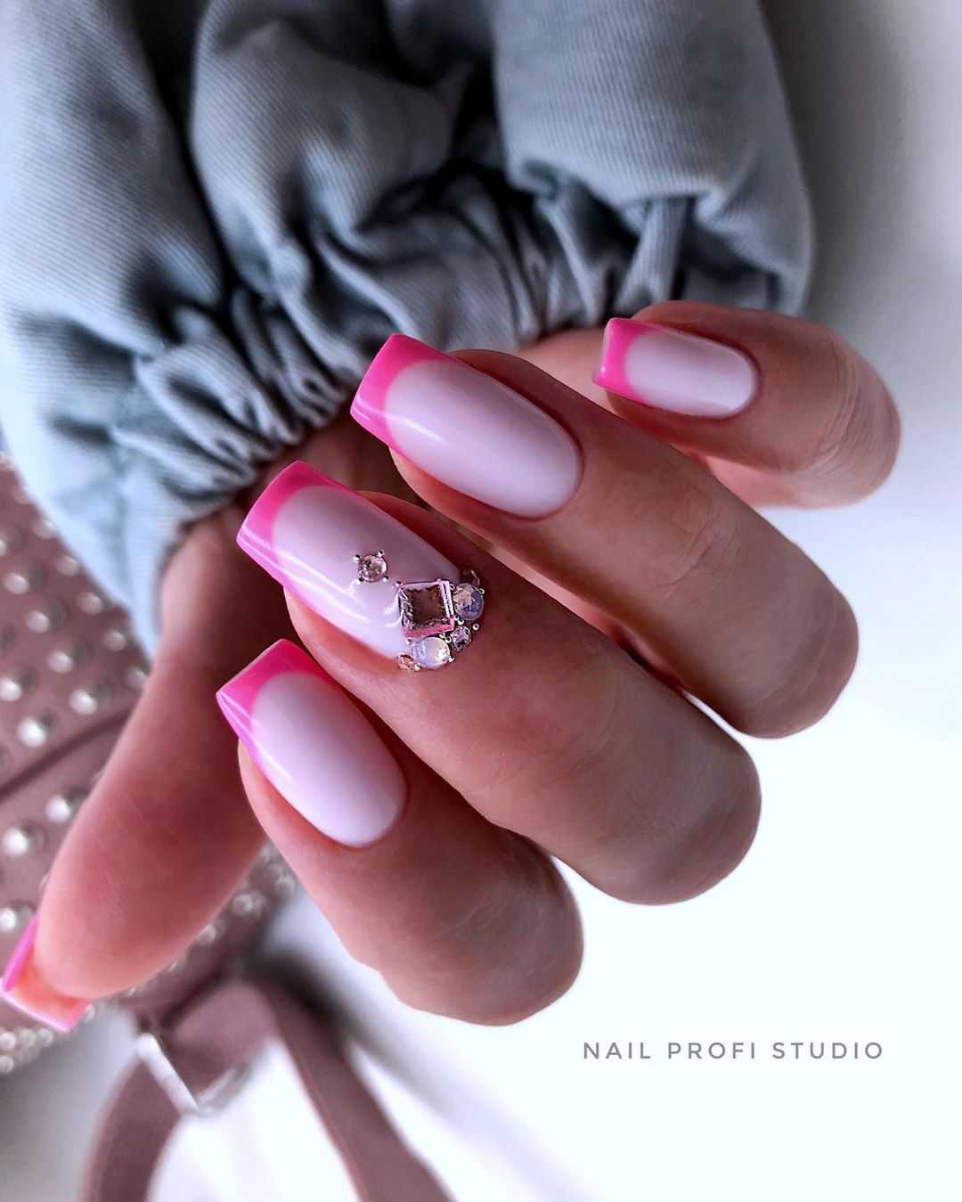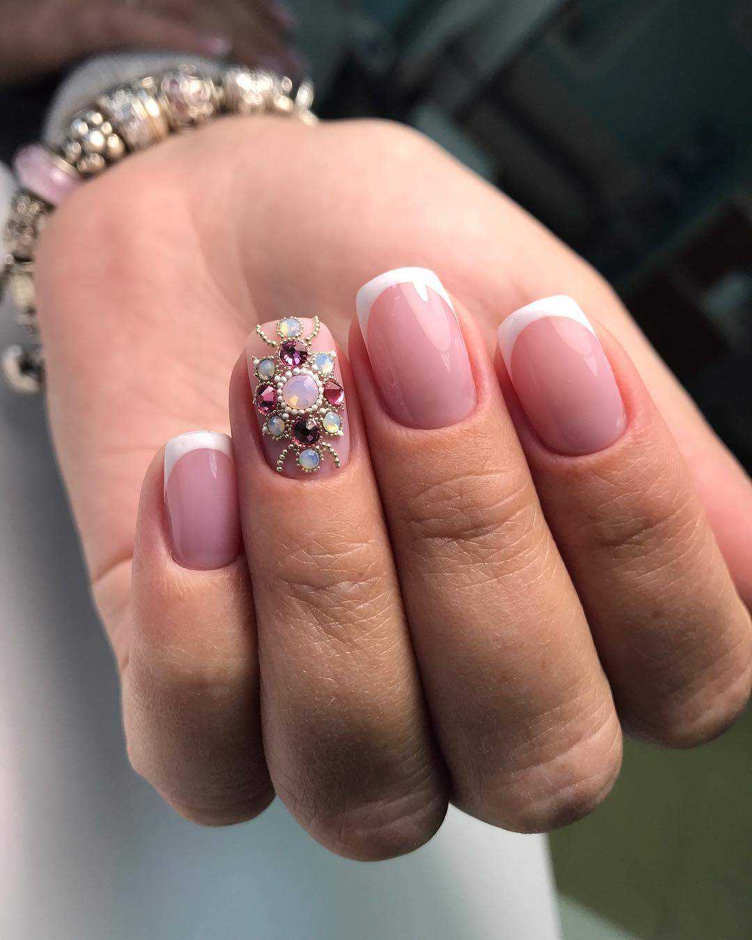 Такой дизайн не отличается броским декором и оттенками, особо не привлекает восторженные взгляды, выглядит привычно и обыденно, но вместе с этим бело-розовый френч признан самым популярным и востребованным дизайном у женщин всех возрастов. Хотите, что маникюр вписывался в любой ваш образ, тогда обязательно выполните классический французский дизайн.