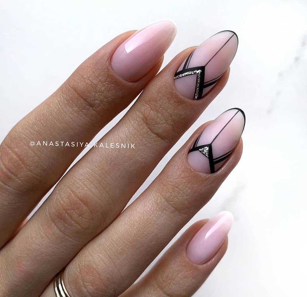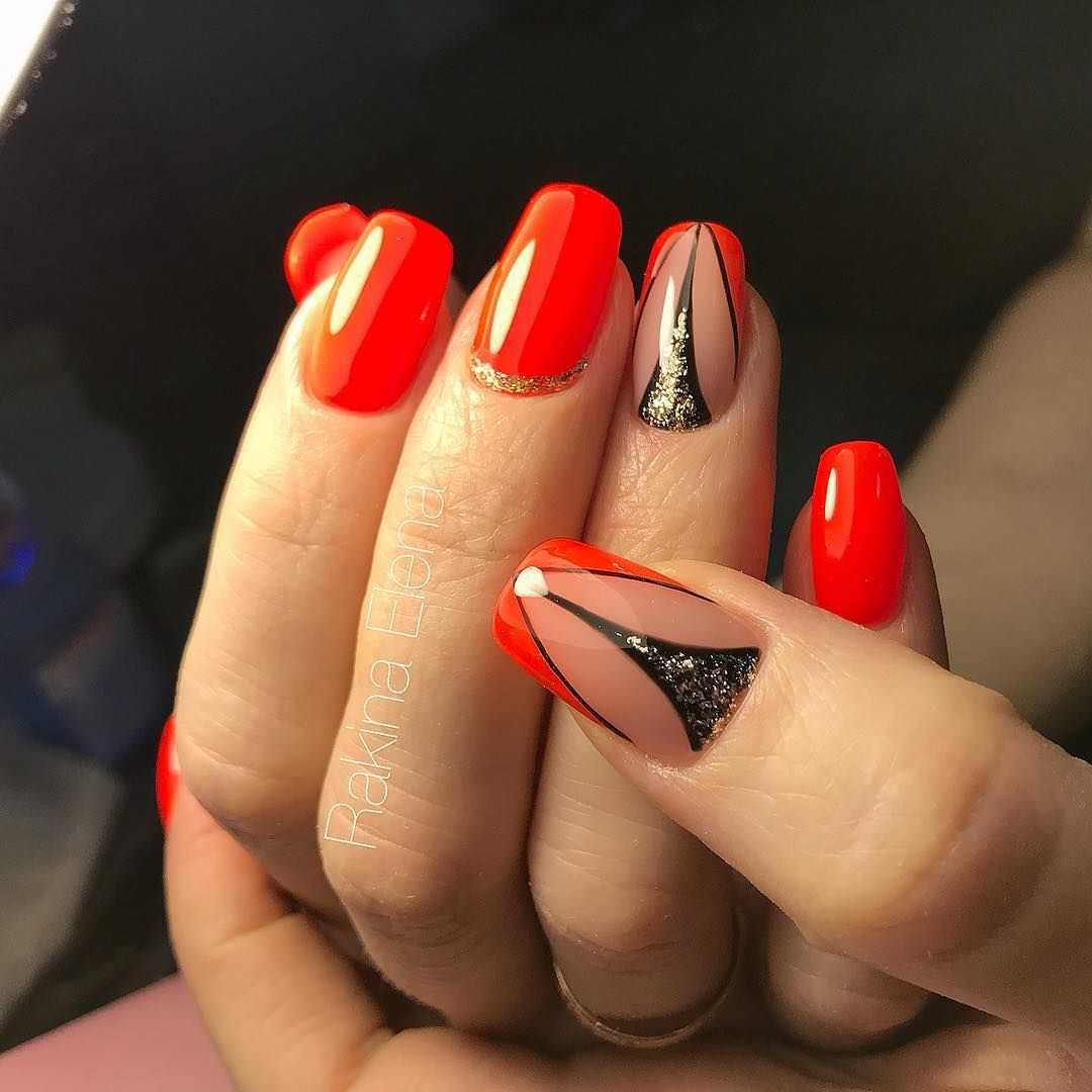 Геометрический дизайн зачастую выглядит, как сочетание тонких линий и фигур. Нейл-мастера делают данный маникюр чаще всего вручную, используя набор кистей и красок. Но при желании можно воспользоваться стемпингом или слайдер-дизайном. С их помощью получается не менее красивое оформление ногтей.