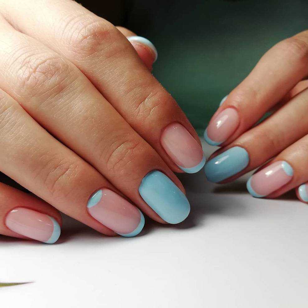 Среди наиболее универсальных идей френча на ногтях 2022 следует отметить маникюр в пастельных тонах. Здесь ногтевая пластина окрашивается в естественные нюдовые тона, а сам ноготь – в лиловый, нежно-розовый, кремовый, мятный, персиковый и другие пастельные. Необычный вариант пастельного френча – ноготь и пластина окрашиваются в пастельные оттенки похожих цветов.