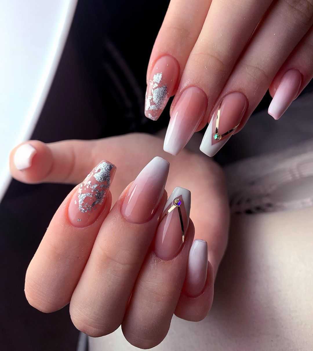 Фольга позволяет создать сотни интересных нейл-артов, ведь в зависимости от основного фона, она может выглядеть совершенно по-разному. Серебряная фольга великолепно смотрится на светлом и темном фоне. Она создает акцент во всем дизайне, делает его благороднее.