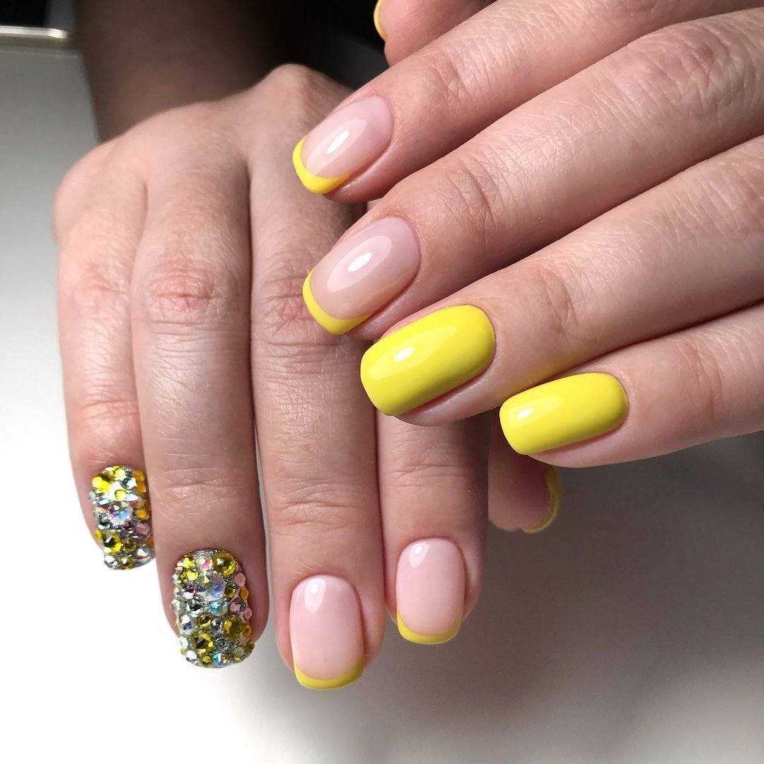 Добавь немного солнечного света к французскому маникюру и раскрась кончики в насыщенный желтый цвет. Оформи ногти маленькими цветными звездочками, или просто приклей готовые нейл-принты. Для базового тона используй прозрачный лак, чтобы не перегружать дизайн.