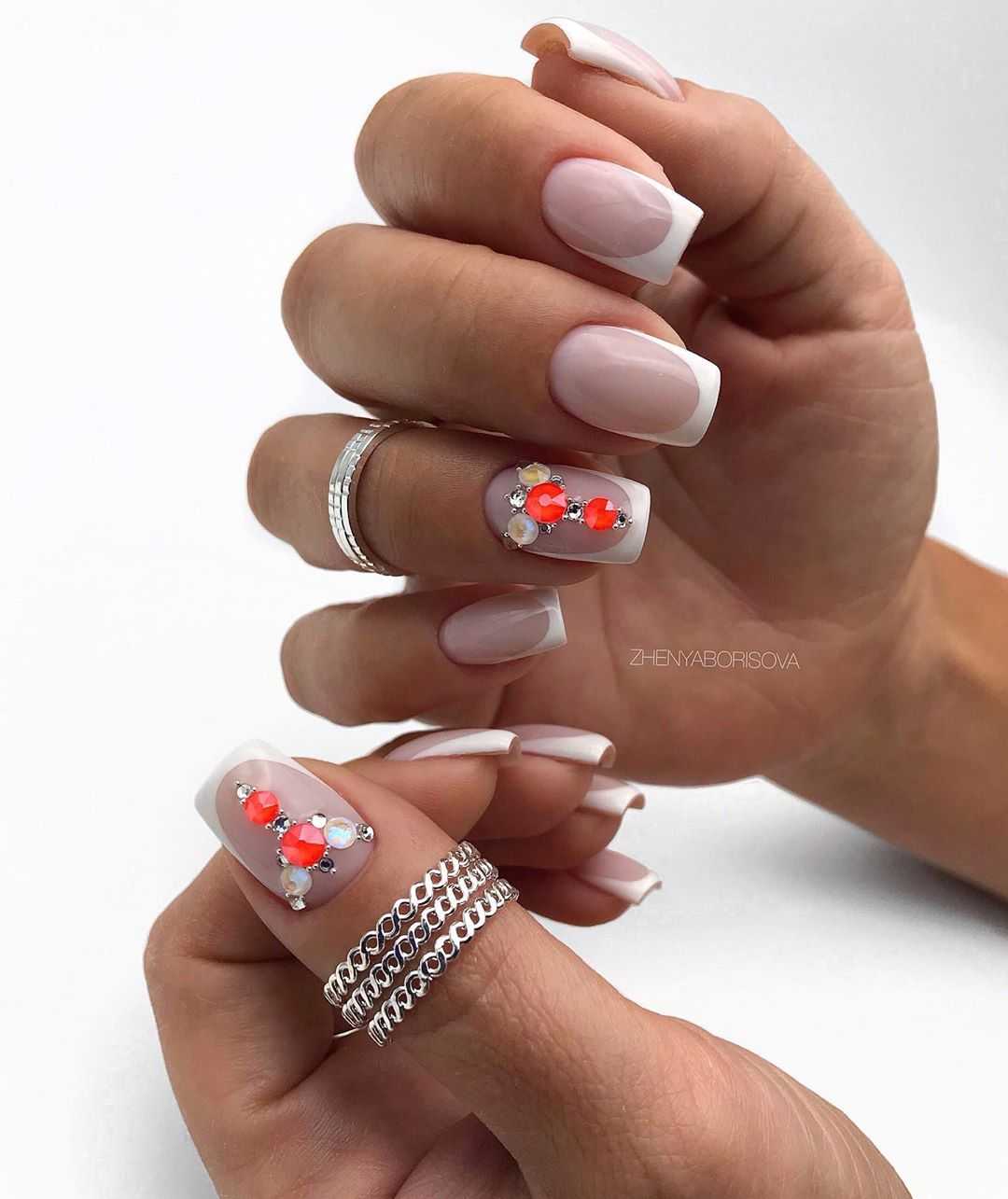 Френч — универсальный вариант маникюра, который способен подружиться с максимальным количеством дизайнов. Вы можете сделать французский маникюр и носить его всю рабочую неделю, ближе к торжественному мероприятию просто дополнить ярким декором. Недаром френч был придуман как средство, позволяющее женщине менять множество образов, но оставлять ноготки без изменений.