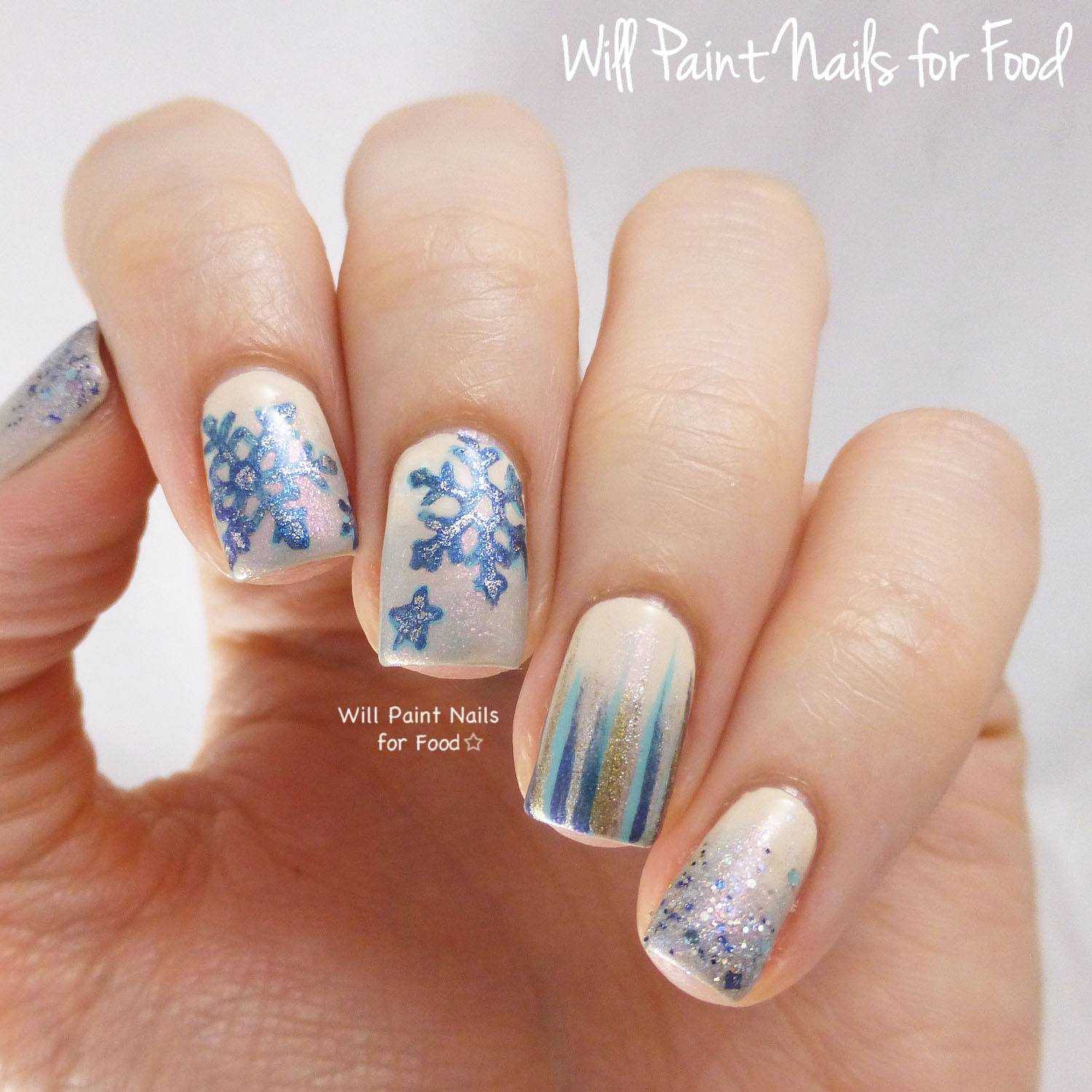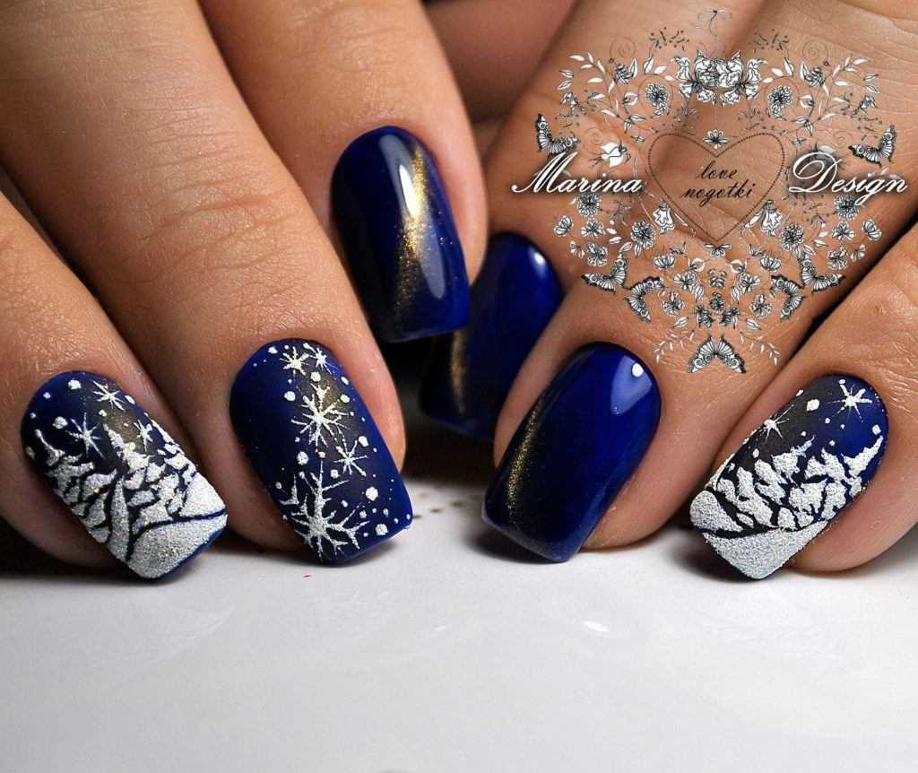 Зимний маникюр из сине-сиреневой и сине-белой гаммы