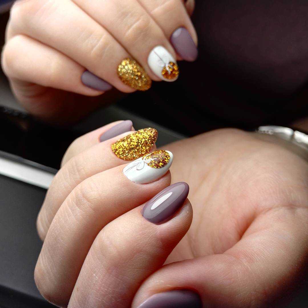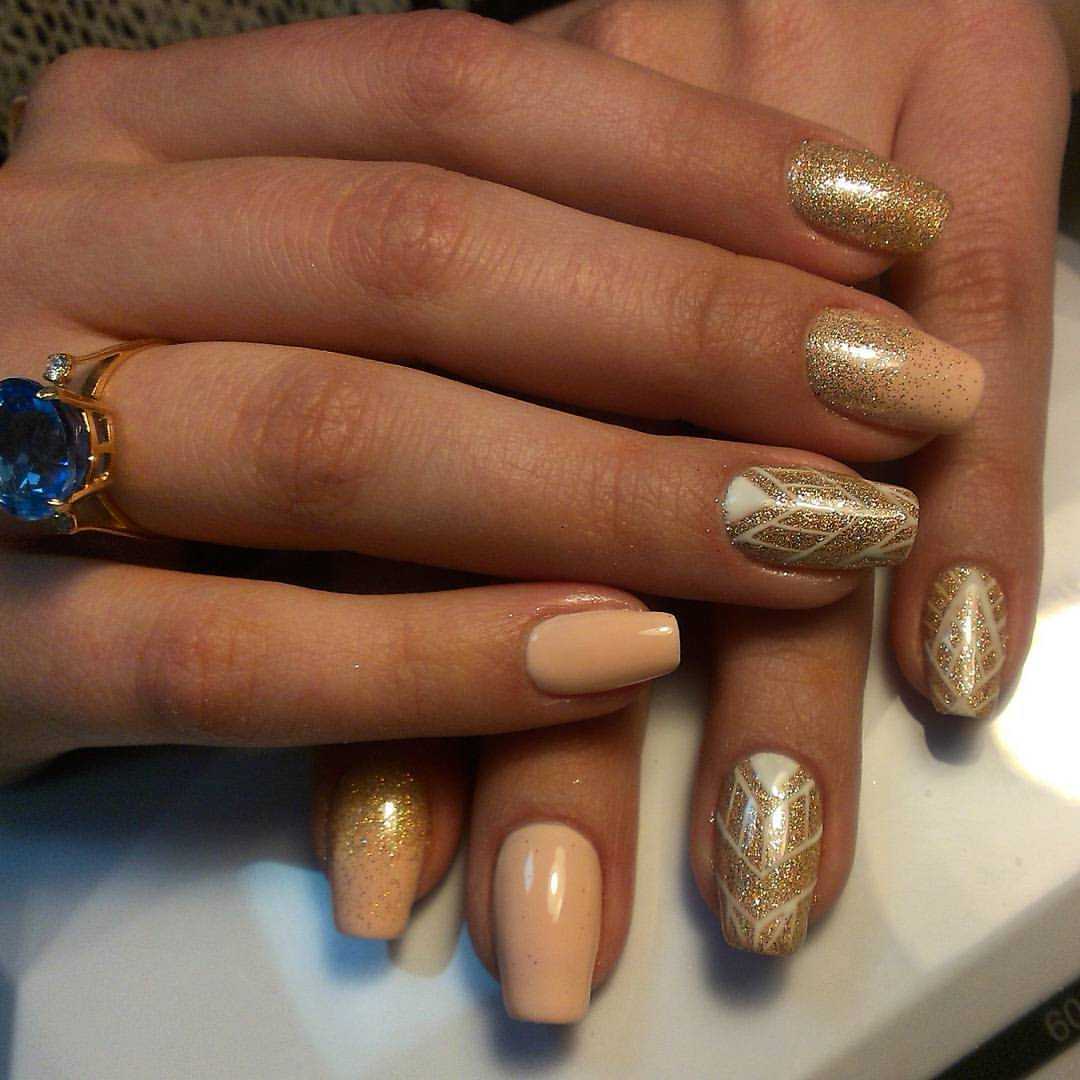 Золото и беж. Вполне спокойное сочетание, которое подходит для дам, любящих размеренный ритм жизни. Здесь нет вычурности и резкого перехода цвета. Поэтому nail-art в этих оттенках будет смотреться очень мило.