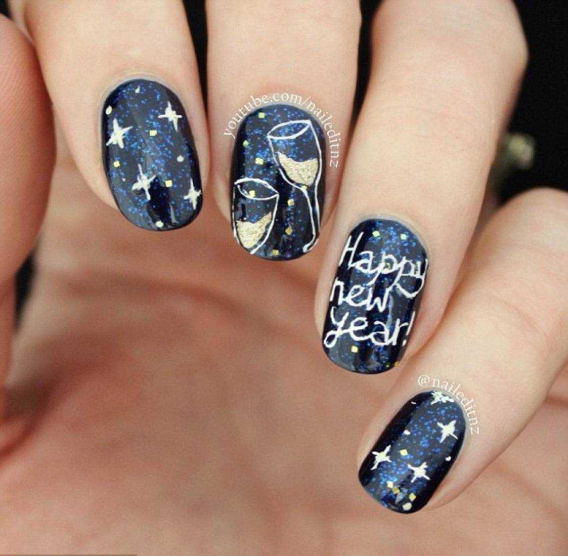 В новогоднюю ночь прекрасно будет смотреться маникюр с мелкими блестками, напоминающими пузырьки шампанского в бокале. Для создания модного нейл-арта используется омбре с переходом от цветной основы к блестящему покрытию. Лучше использовать теплые оттенки лака и глиттера. Классический вариант – белое покрытие с золотистыми блестками. Девушкам, которые предпочитают яркие решения, в новогоднюю ночь можно попробовать более выразительные сочетания:
