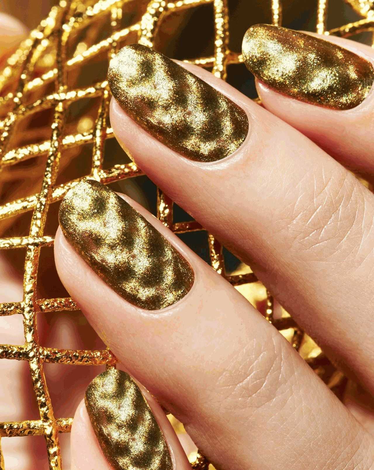 Конечно, при разговоре об оформлении золотого маникюра 2019 всевозможными способами нельзя сбрасывать со счетов золотой гель-лак.