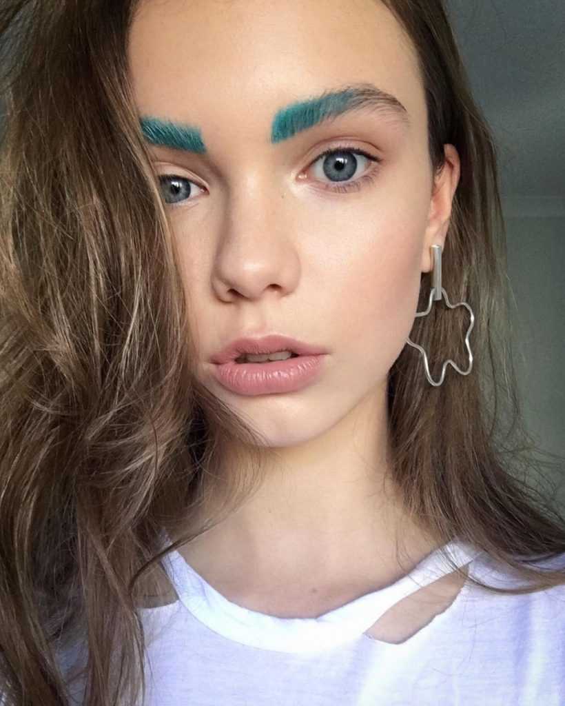 Чаще всего модницы окрашивают брови в необычные цвета, которые сочетаются с цветом