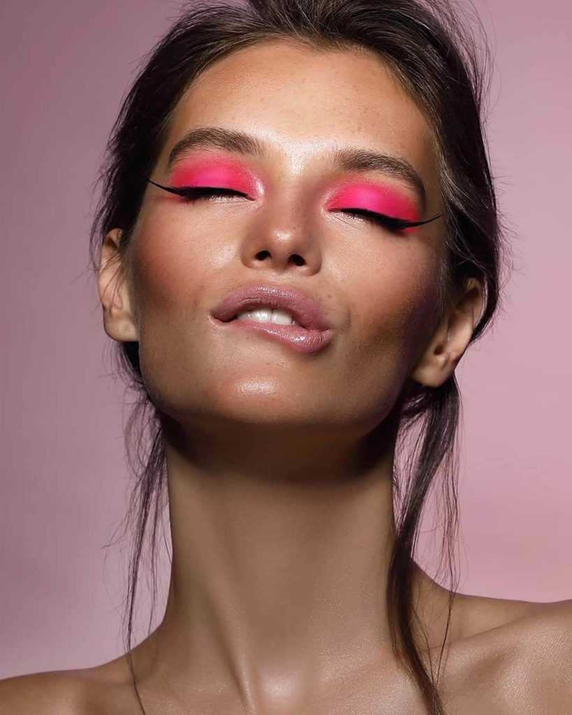 Розовый макияж глаз предполагает четкие, драматические ресницы