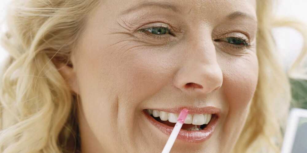 Скорее всего, вы уже определились, какой цвет помады вам больше к лицу. Но визажисты предупреждают: яркие, ненатуральные или слишком темные, мрачные тона старят образ. Поэтому нужно отдавать предпочтение спокойным, естественным оттенкам. Яркие цвета могут использоваться женщинами 50 лет для вечернего макияжа. Пошагово наносить помаду следует так. Темную подводку используем только в исключительных случаях, когда для торжеств мы красим губы в яркий и насыщенный цвет. Для повседневного макияжа наносим оттенок «нюд». Но перед этим обозначаем желаемый контур карандашом на восковой основе. Женщины после пятидесяти часто сталкиваются с проблемой опущенных губ. В таком случае краешки рта мы не красим вообще – ни контурным карандашом, ни помадой. Если вы хотите придать образу элегантности, можно использовать кроме нюда и другие цвета. Но стоит избегать слишком мрачных или вызывающе ярких. Сама помада по текстуре должна быть увлажняющей, плотной. Такое средство заполнит все морщинки и придаст губам выпуклости. От блесков зрелой даме лучше отказаться. Для торжеств можно нанести его только на середину верхней губы – для придания объема.