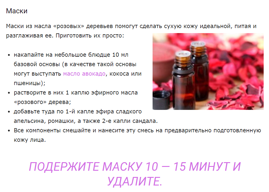 Эфирное масло розового дерева для лица: свойства, рецепты