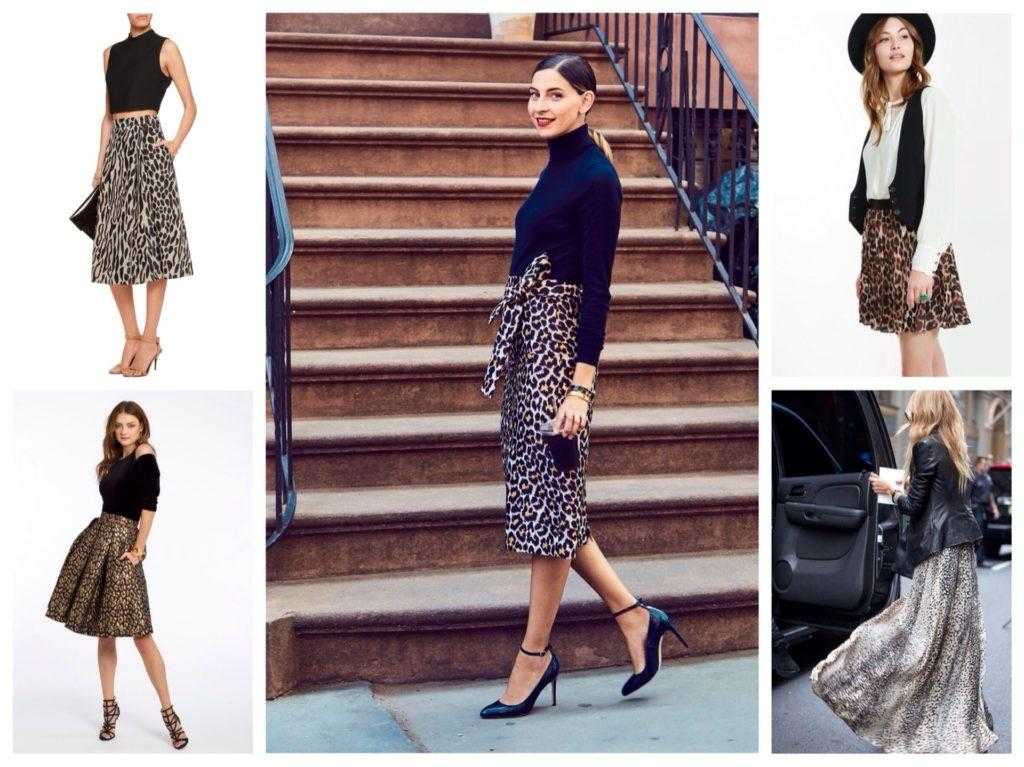 Штаны подойдут практически любые, от рваных бойфрендов до классических моделей. Но юбочные комплекты требуют большей внимательности. Леопардовые аксессуары хорошо дополняют образы с прямыми, силуэтными и чуть расклешенными платьями, юбками. Но пышные модели, солнце слишком романтичны и нежны для звериных акцентов. С кружевными блузками, юбками и платьями леопардовые аксессуары не дружат по той же причине, поэтому их рекомендуем не надевать.
