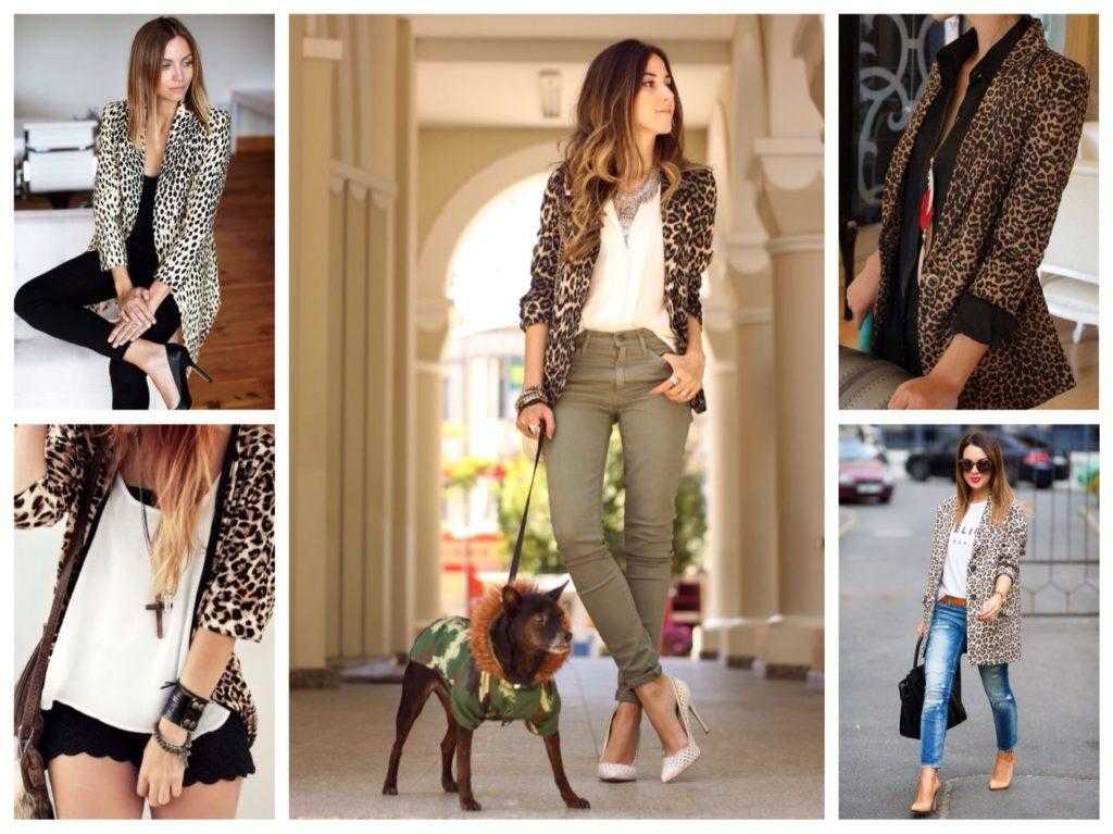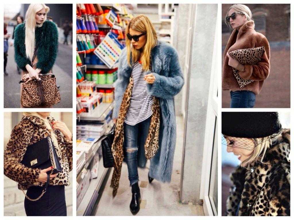 Если говорить о верхней одежде, то леопардовые акценты комбинируются со многими однотонными моделями из разных стилей: тренчами, полупальто, короткими черными и коричневыми шубами. Но самые дерзкие луки, конечно же, получаются при сочетании леопардовых деталей с кожаной курткой.