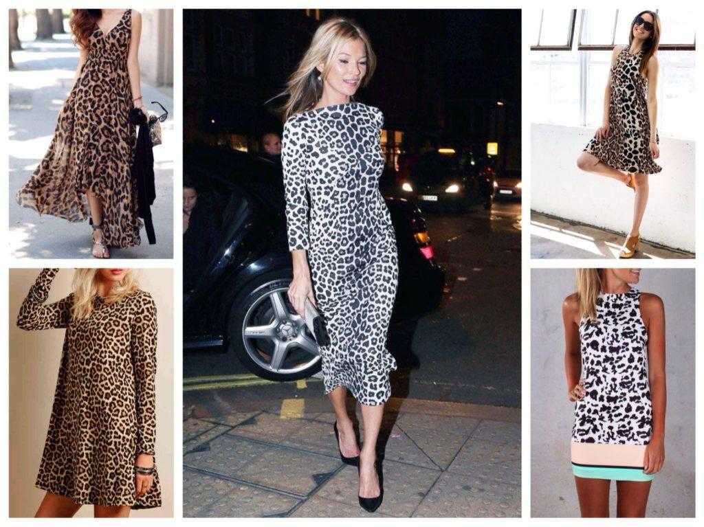Разумней будет остановить выбор на платьях лаконичного фасона с расцветкой «черно-белый леопард» или же на моделях, где хищный принт представлен в виде отдельных вставок.